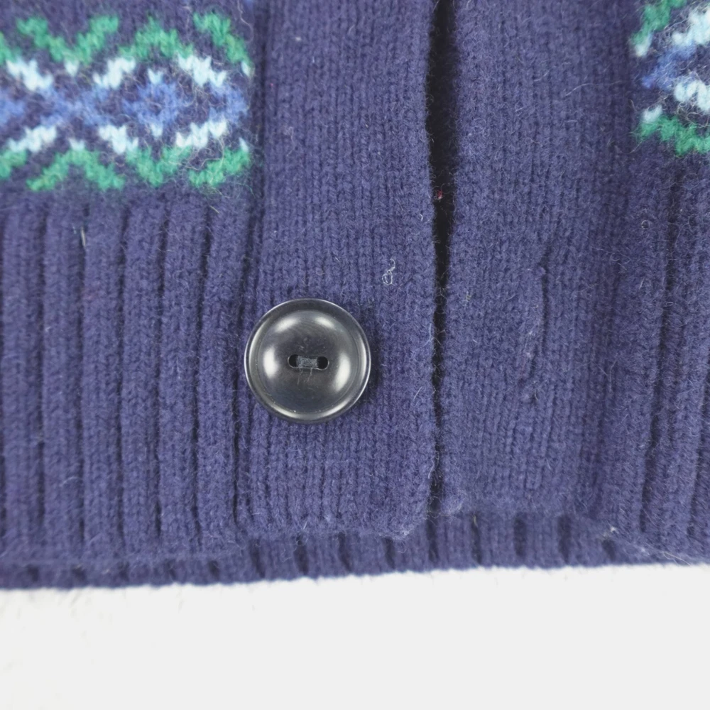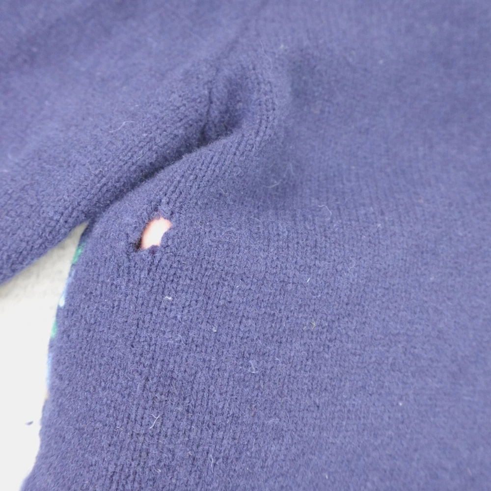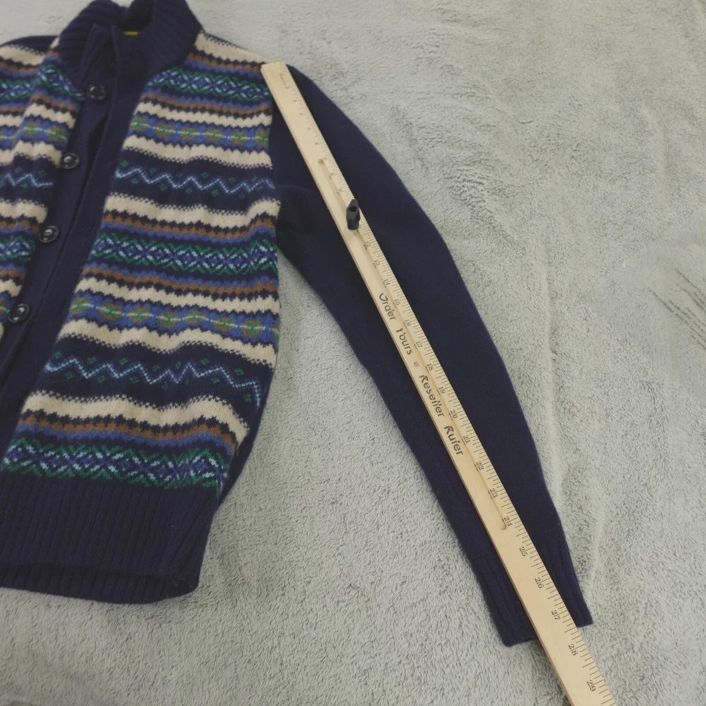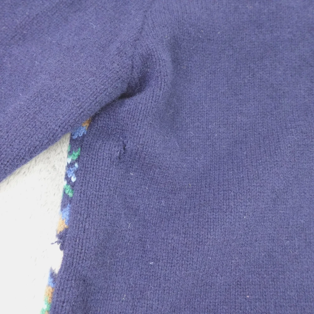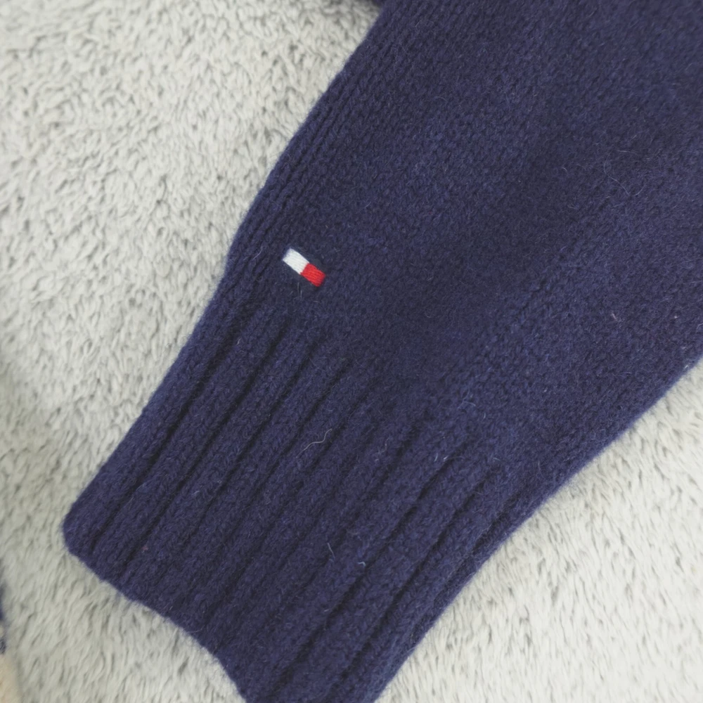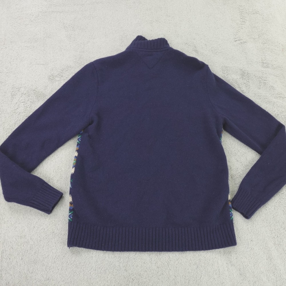 Tommy Hilfiger Fair Isle Sweater Mens Large* Navy Blue Multi Wool Cardigan. Sweater is in good pre-owned condition, one hole is noted on the back left side as pictured, no stains, tears or other signs of wear noted, no other moth holes detected, please review all photos. Note, sweater is tagged a size large, estimated to best fit a mens size medium based on the current TH size chart and measurements, please see photos for measurements to ensure best fit. If we missed something, don't worry, we offer free returns. Just indicate, "just didn't like it," for any reason, and we'll pay for the return. Thanks for visiting!