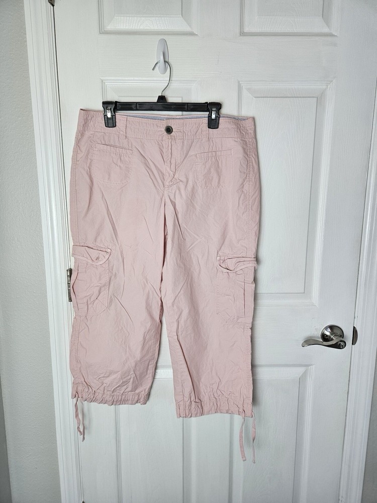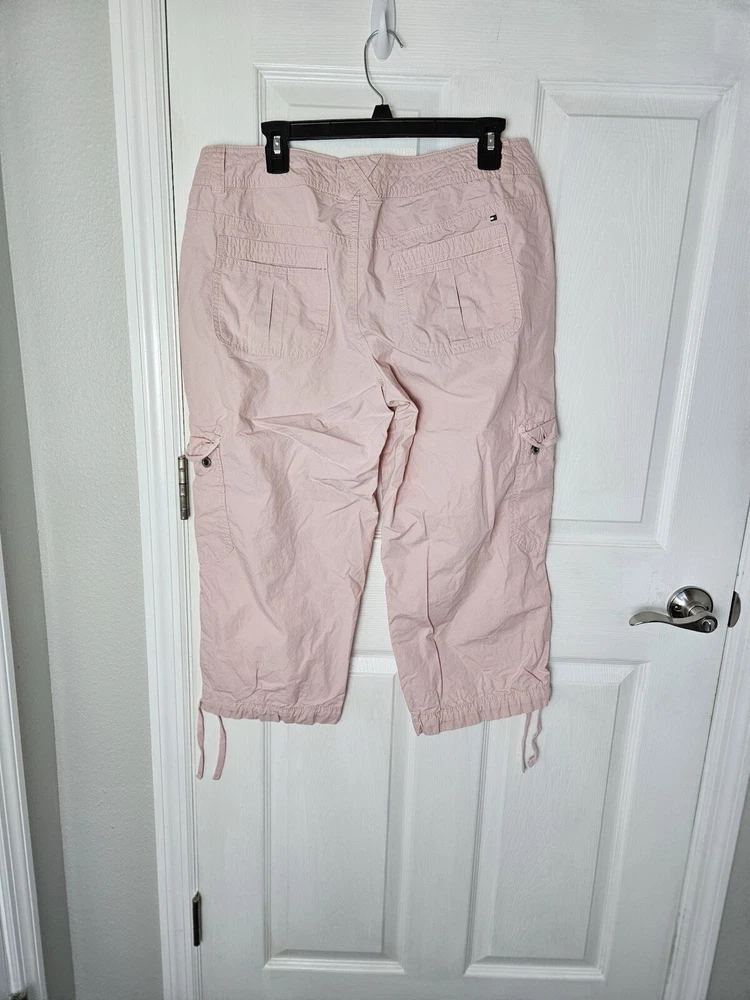 Brand: Tommy Hilfiger Vintage: No Handmade: No Closure: Zip, Button, Drawstring Department: Women Inseam: 21.5 in Season: Spring, Summer Style: Cargo Material: Cotton Rise: Mid (8.5-10.5 in) Type: Pants Occasion: Casual, Travel Size Type: Regular Country/Region of Manufacture: Bangladesh Garment Care: Machine Washable Color: Pink Size: 12 Leg Style: Straight