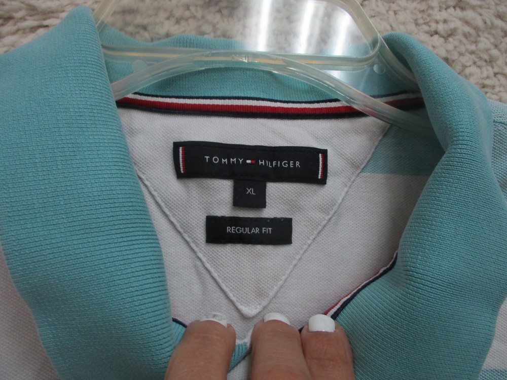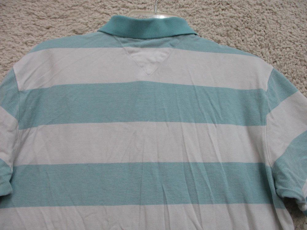 $ 19.01Tommy Hilfiger White Red Blue Stripe Polo T Shirt Mens Size Large
