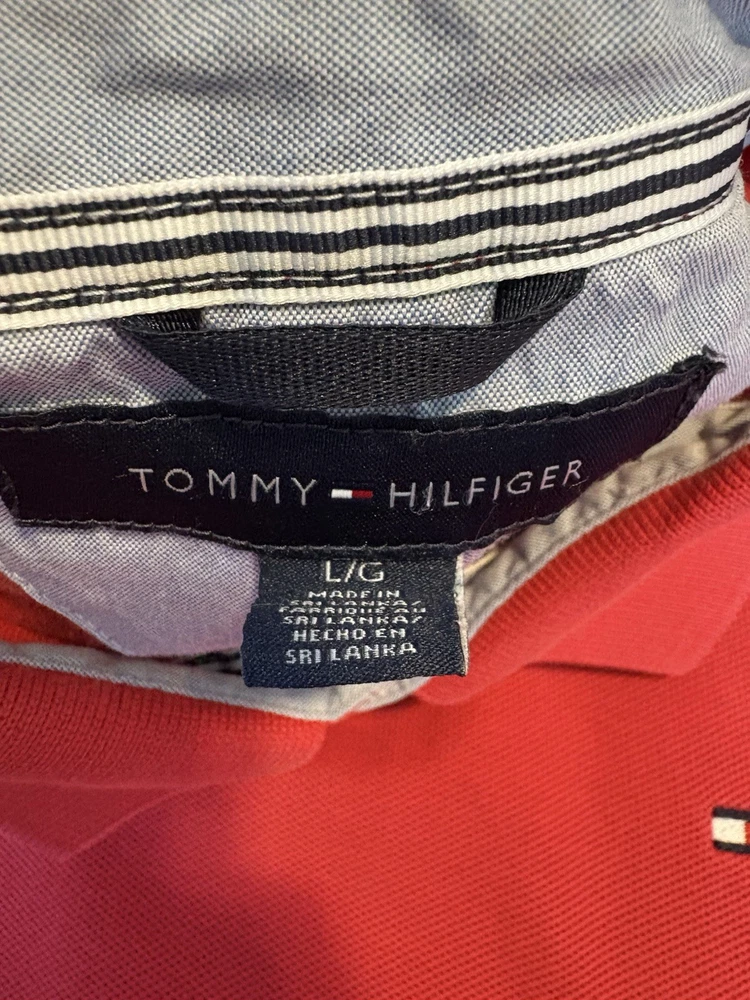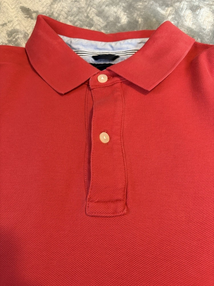 Tommy Hilfiger Polo Shirt Mens Large Classic Fit Red Cotton Short Sleeve