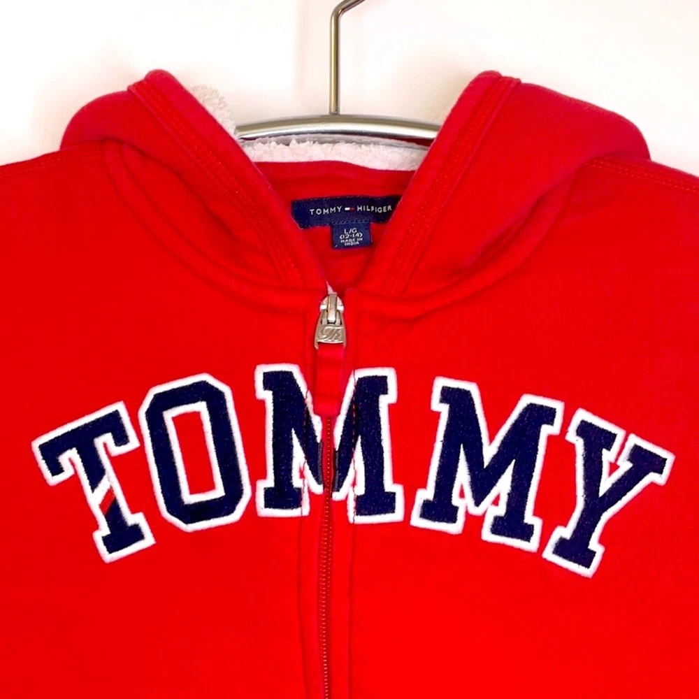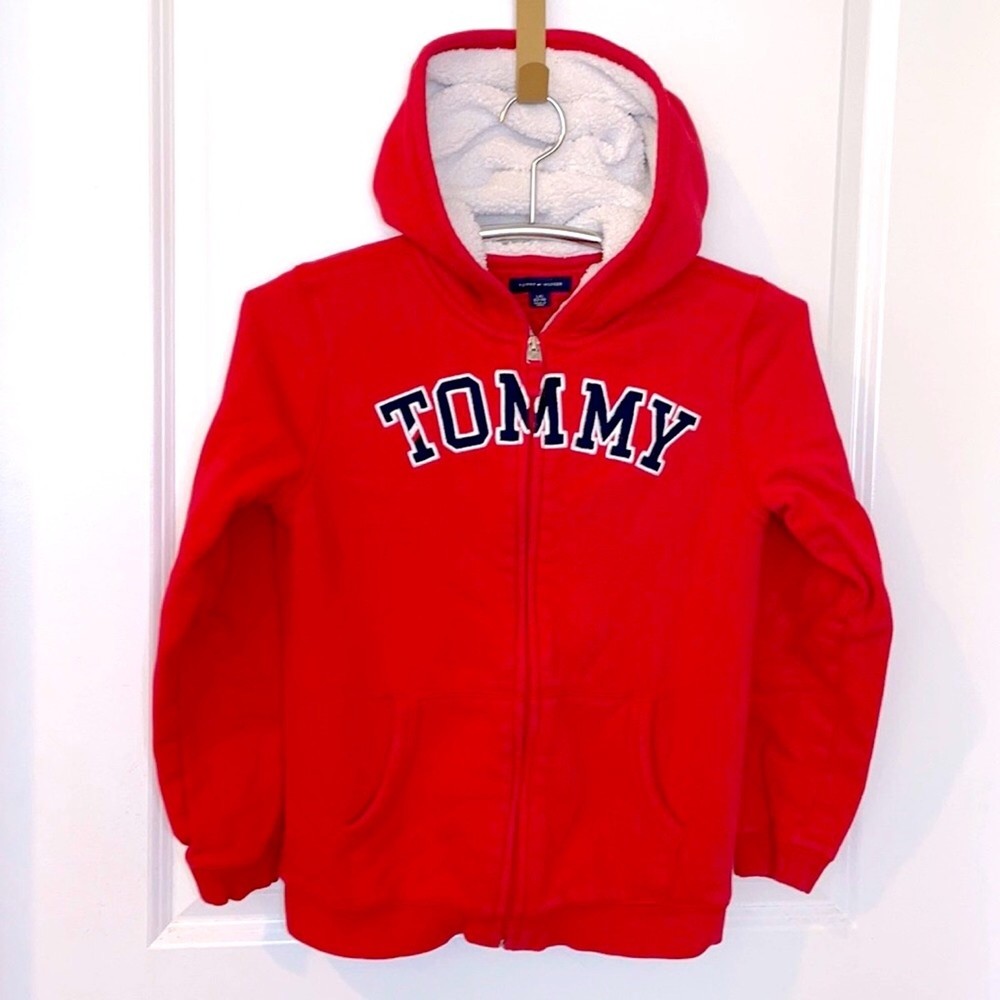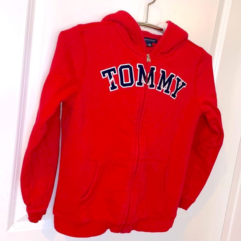 Kids Size Large (12-14) Red TOMMY HILFIGER Fleece Lined Full Zip Hooded Sweatshirt Like new No signs of wear, stains or damage
