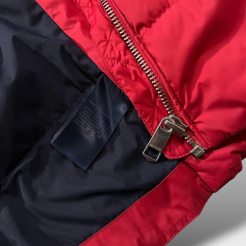Tommy Hilfiger designer down puffer jacket | red π‘ needs a tumble dry to re-puff the fill which went a little flat after a wash- normal procedure in puffer jackets but I don't have a tumble dryer at the moment- all round excellent condition otherwise π‘ full zip, two zip pockets, ribbed elasticated cuffs and collar/ neck π‘ polyester blend outer, nylon blend lining, 100% down and feather fill π size S fits snug p2p 19" l25"