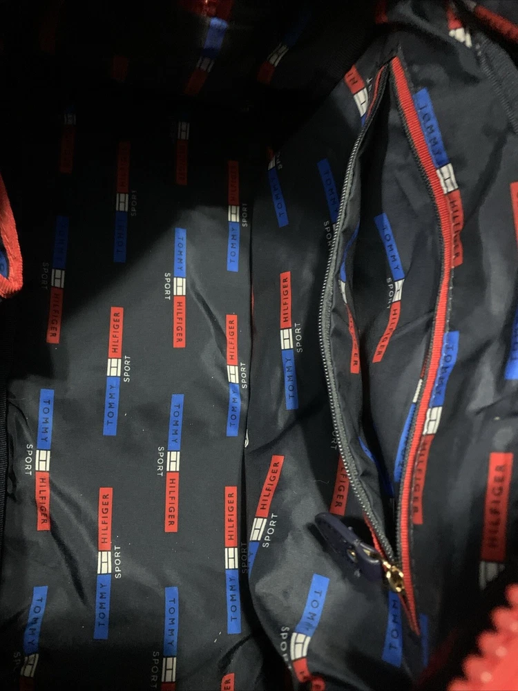 This set of two Tommy Hilfiger Sport Travel Tote Bags is a must-have for any stylish and practical traveler. These bags feature a classic designer pattern with the iconic Tommy Hilfiger logo in red, white, and blue. The bags are made of high-quality canvas material and come with double handles and a crossbody strap for easy and comfortable carrying. The bags have a zip closure and are lightweight, making them perfect for travel. They also feature inner pockets and a navy lining with logo, ensuring that your belongings are safe and organized. With their medium and small sizes, these tote bags are perfect for any occasion and are sure to make a statement wherever you go.