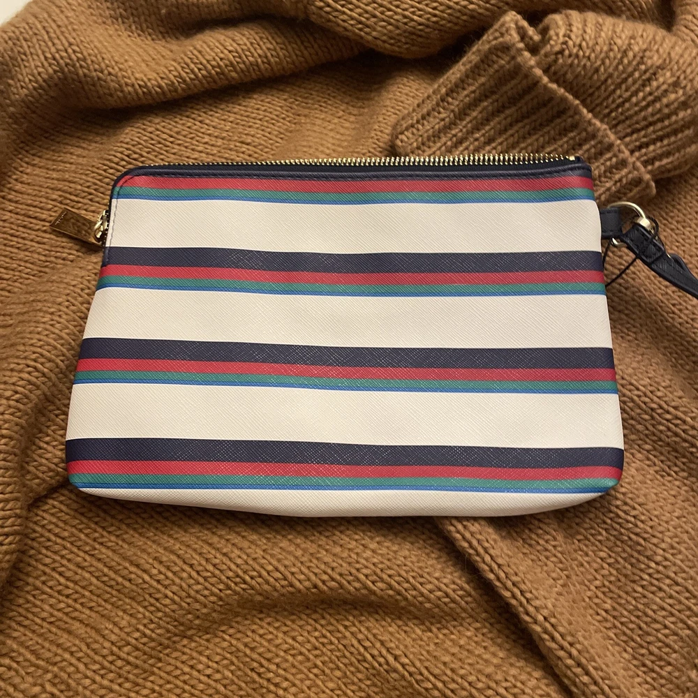 This wristlet clutch is a stylish and practical find! The striped design is classic Tommy Hilfiger, and it arrived in perfect condition—no scratches or scuffs. Shipping was super fast, and I’m thrilled with the purchase. Highly recommend for anyone looking for a chic, everyday accessory!