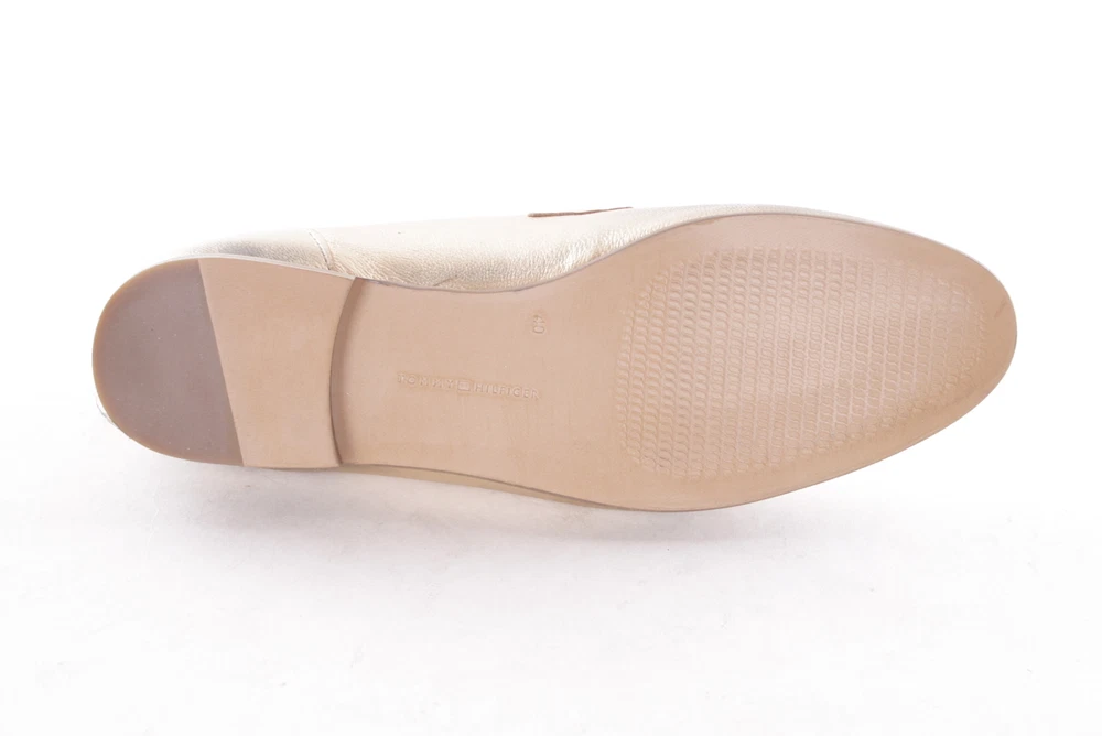 These Tommy Hilfiger slippers are a stylish and comfortable must-have! The gold metallic finish adds a chic touch, while the soft leather and cushioned sole make them perfect for all-day wear. The classic loafer design with the signature logo rivet elevates any casual outfit. Great quality and true to size—absolutely worth it!