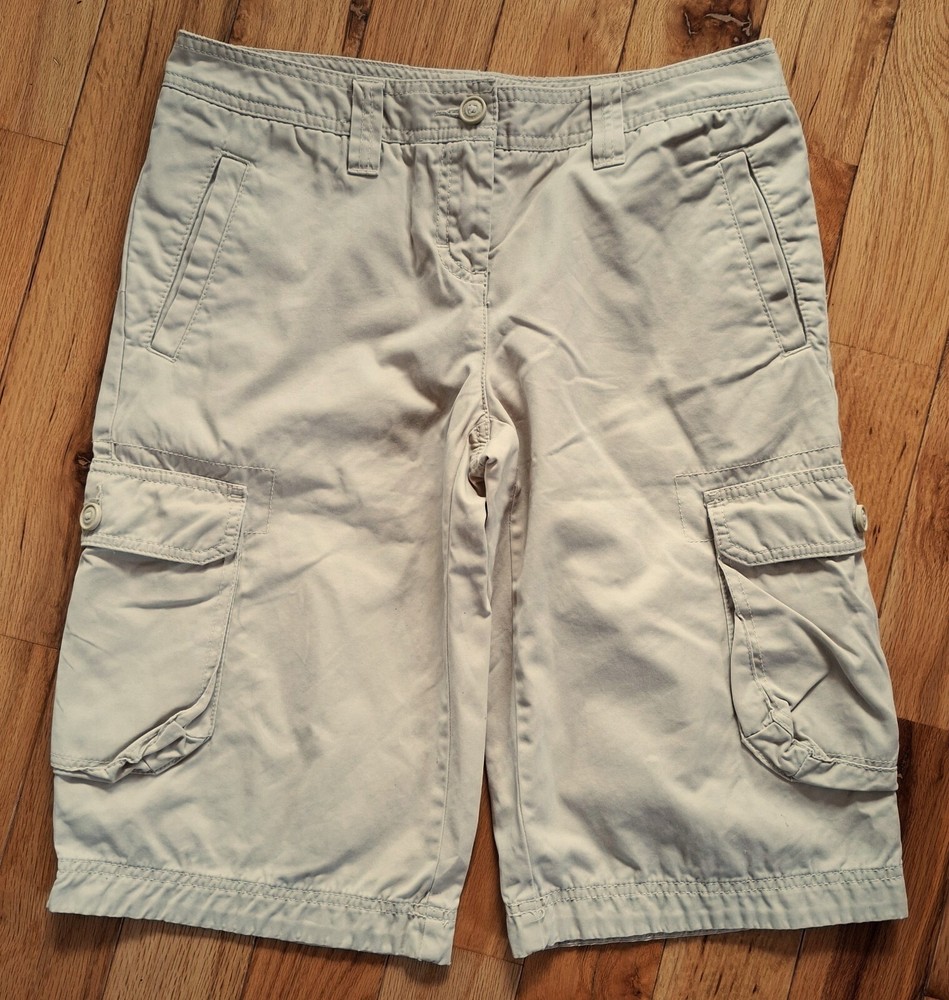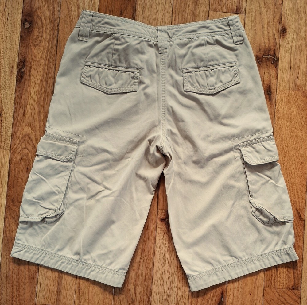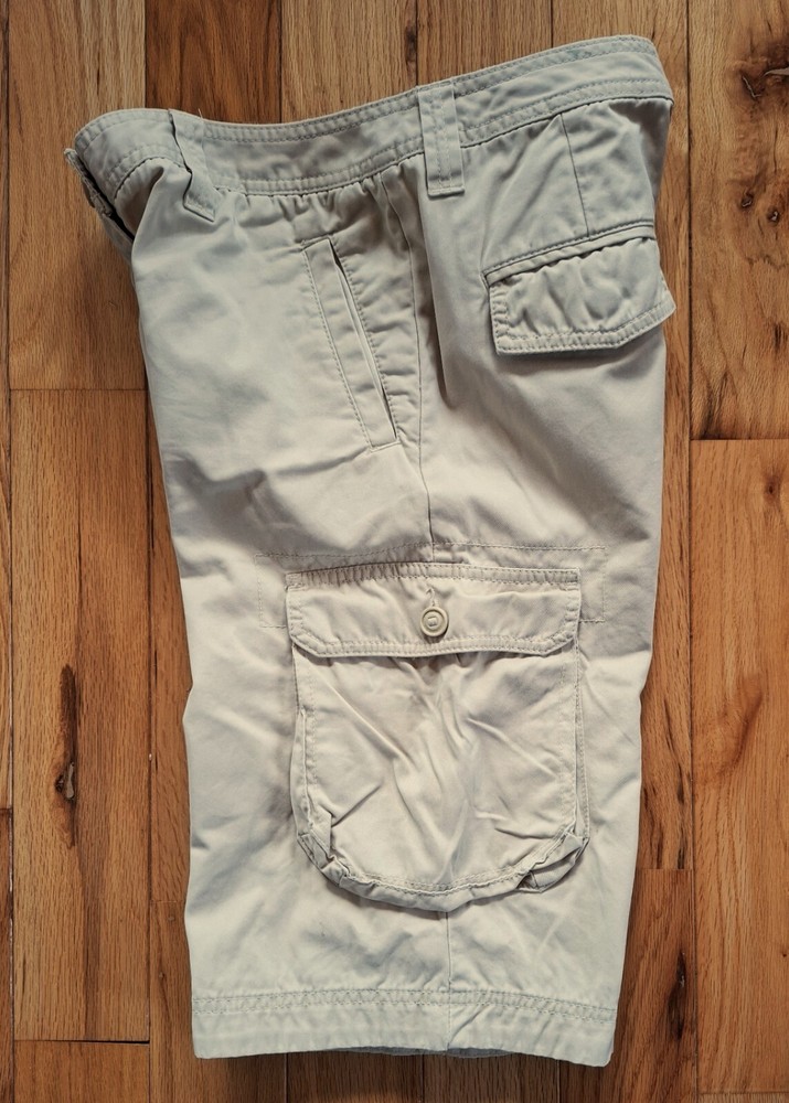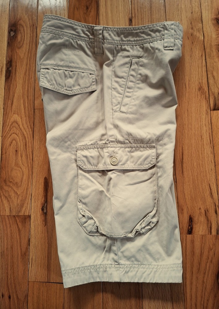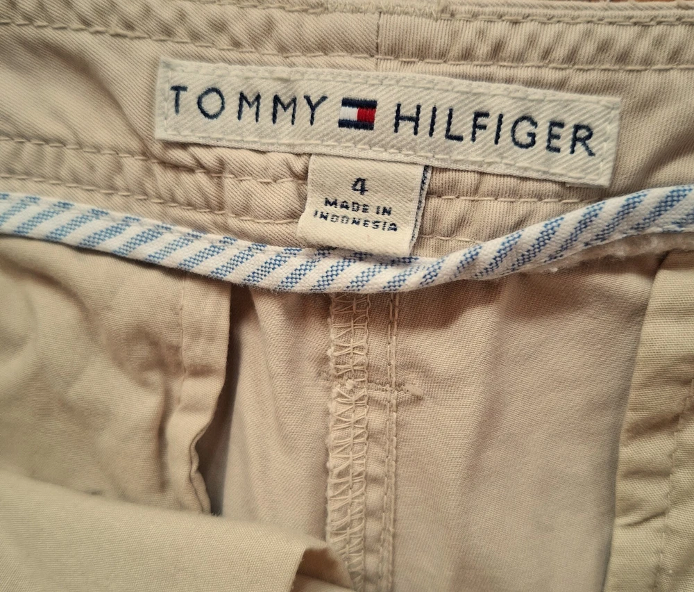 Tommy Hilfiger Hiking Shorts - Cargo shorts - Khaki color - 5 Belt loops - 6 Pockets: 2 front slit pockets in front (7.5"D x 4.5"H) 2 "side pockets with button down flaps (7"D x 6"W) 2 back pockets with snap flaps (4" D x 4"W) - Made in Indonesia - 100% Cotton - Machine wash Dimensions: Waist: 15" (side to side) Length: 21.5" (from top of waist band to bottom edge of leg) Measurements were taken with shorts lying flat and are approximate. Hint: A good way to know if this will fir is to measure a similar one you already comfortably wear, and then compare measurements to those above. SEE ALL PHOTOS!