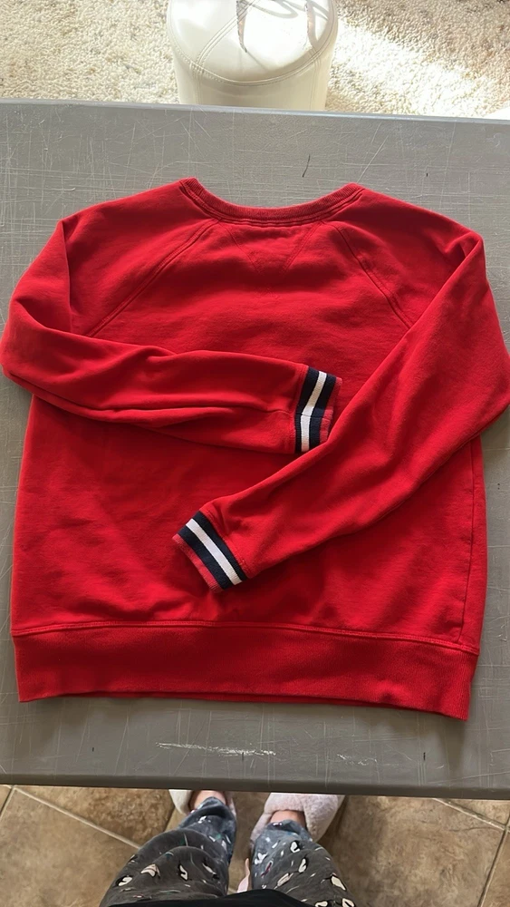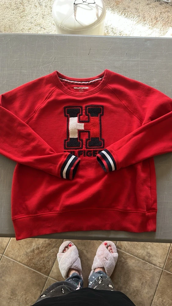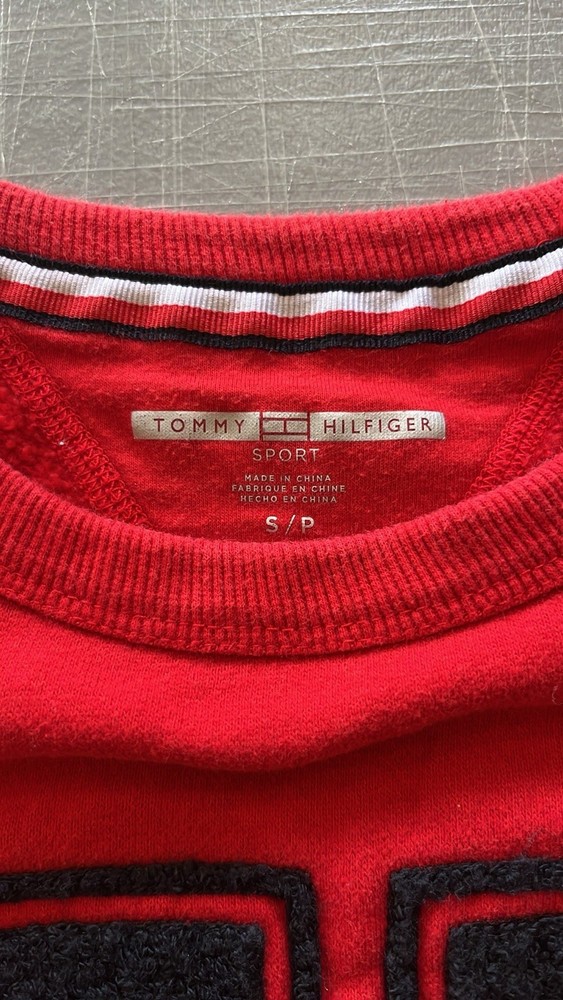 The perfect combination of signature style, varsity stripes and soft chenille, by Tommy Hilfiger Sport. Size small. Very soft fabric! Excellent condition Product Features Hits at hip Crew neckline Logo at front; striped and ribbed cuffs, waistband and neckline Cotton/polyester Machine washable Please look closely at all the pictures for condition and details. No returns. If you have any questions, please email me. Thanks! Shipping Note: I will ship it via USPS. You must have a physical address, NO P.O. Boxes. I am only shipping it in the continental United States. NO Hawaii, NO Alaska, and NO Puerto Rico