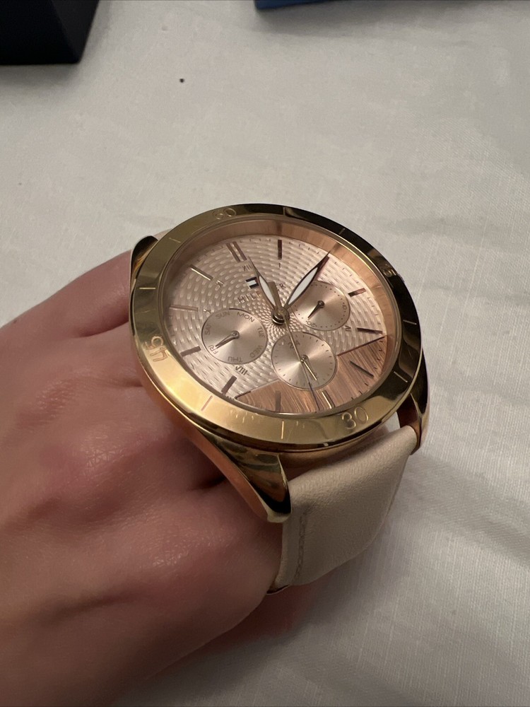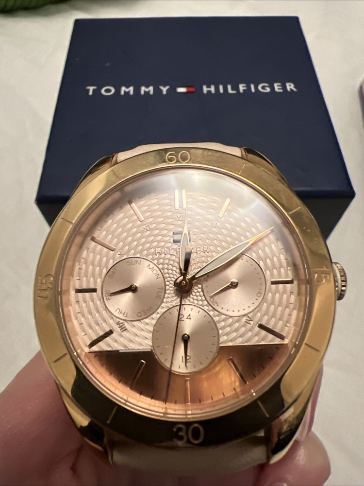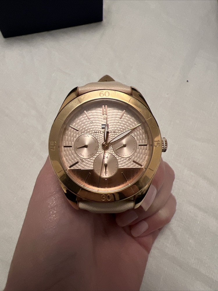 Tommy Hilfiger Women’s Rose Gold Dial Watch with Pink Leather Strap Condition: new without tags, some minor scuffs along the outside dial