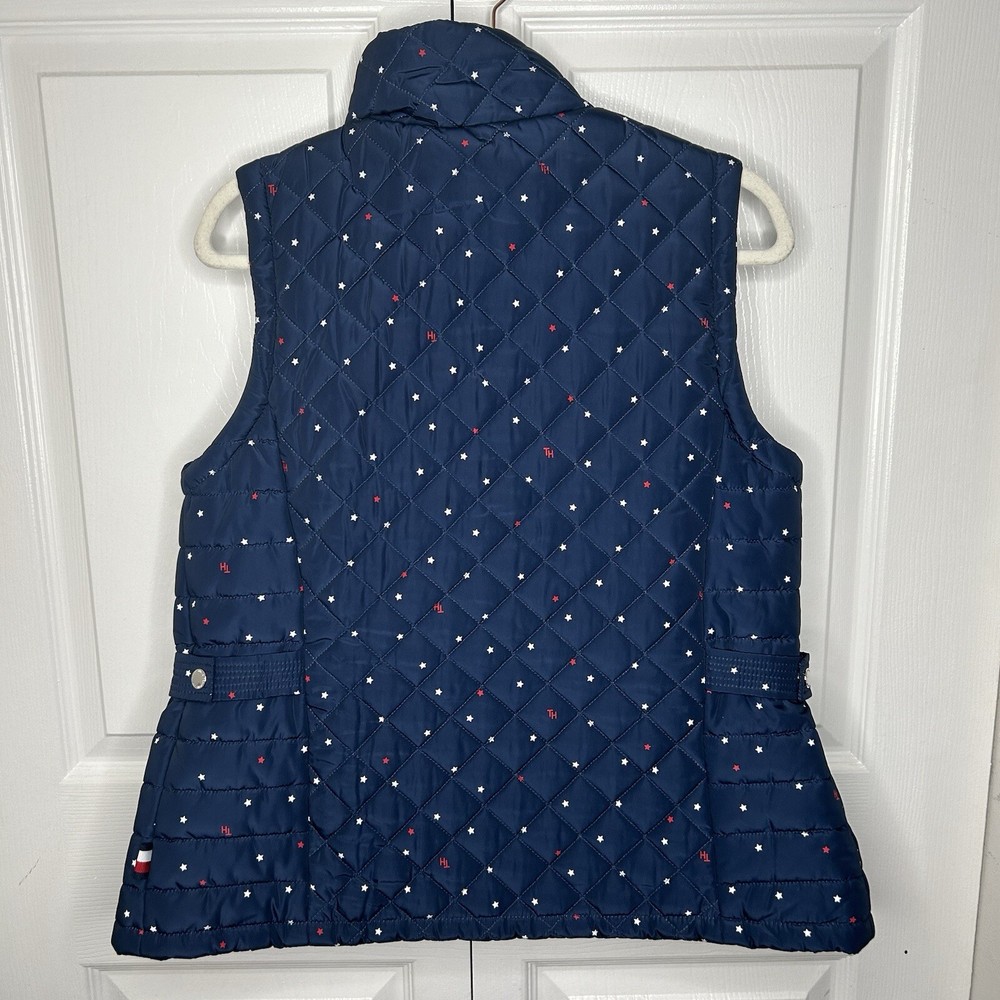 Tommy Hilfiger Women's Vest Diamond Quilt Star Navy Zipper Up Size S
