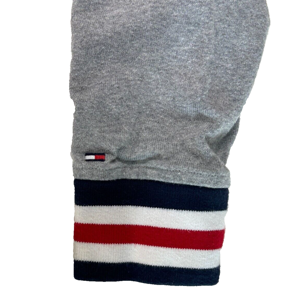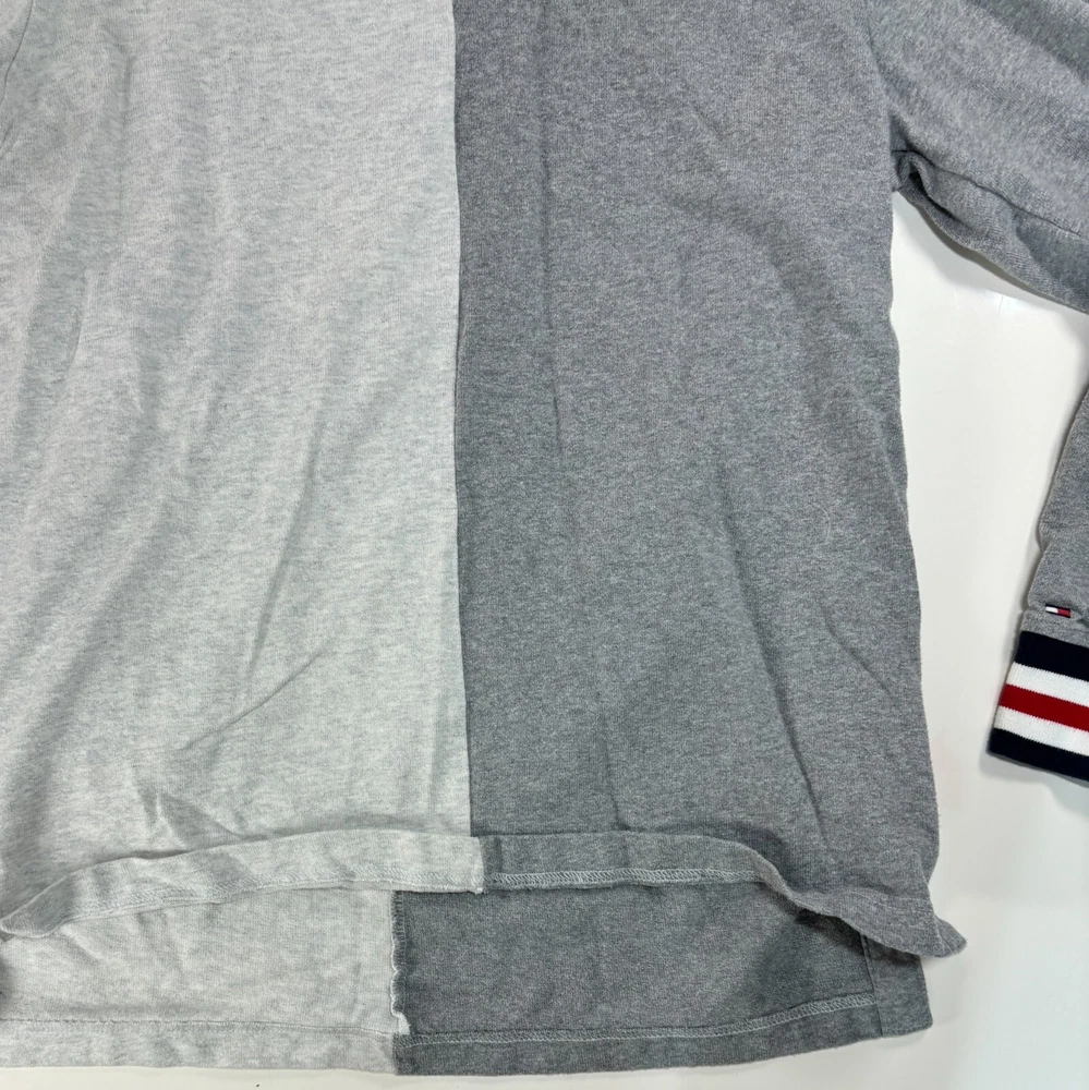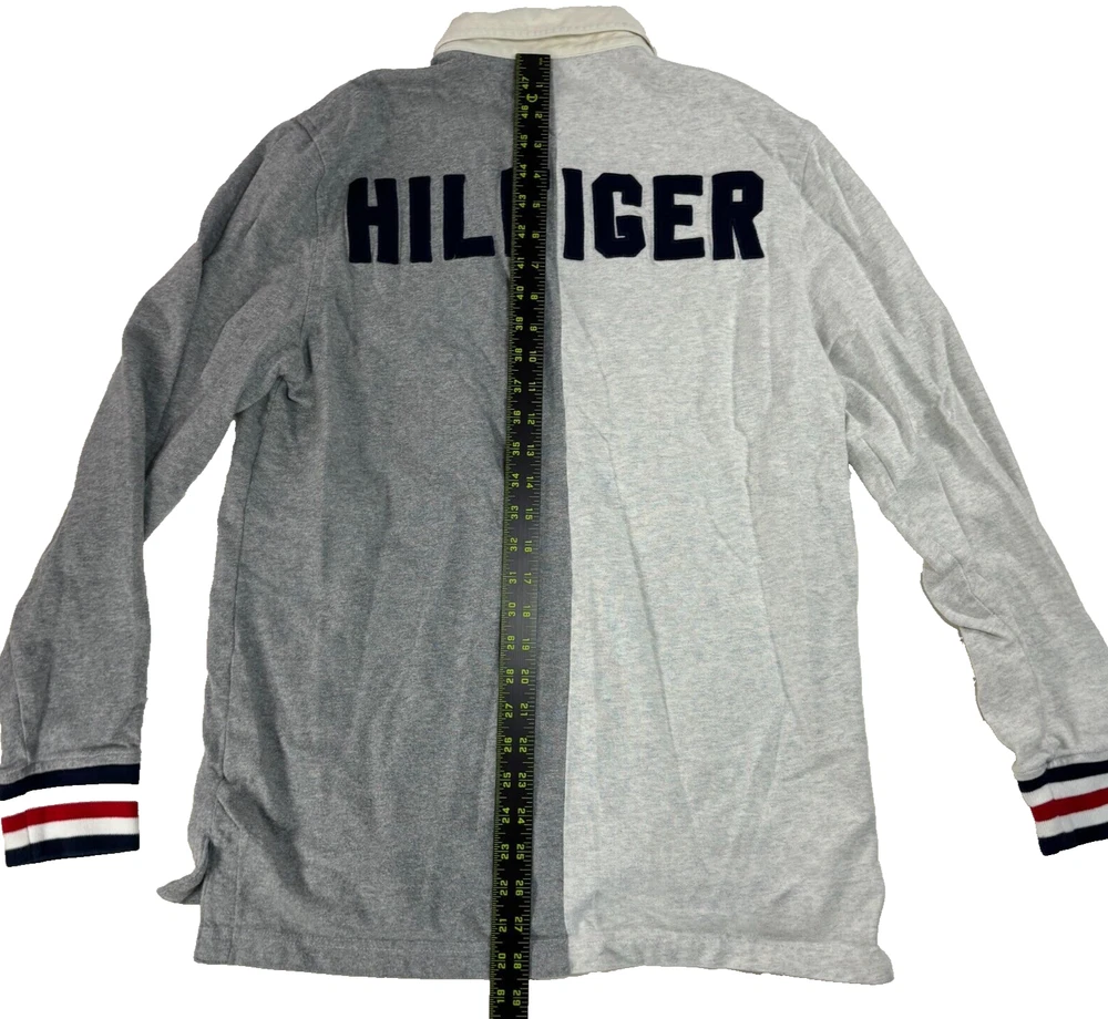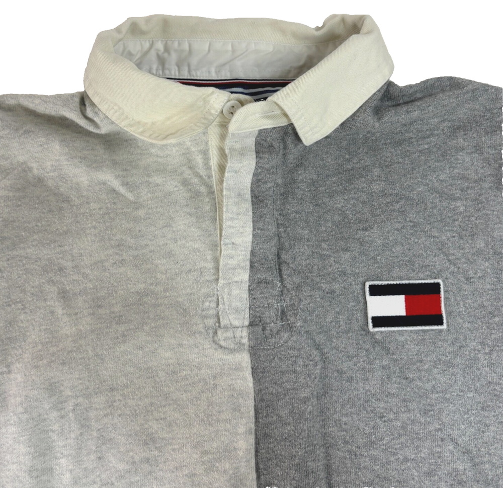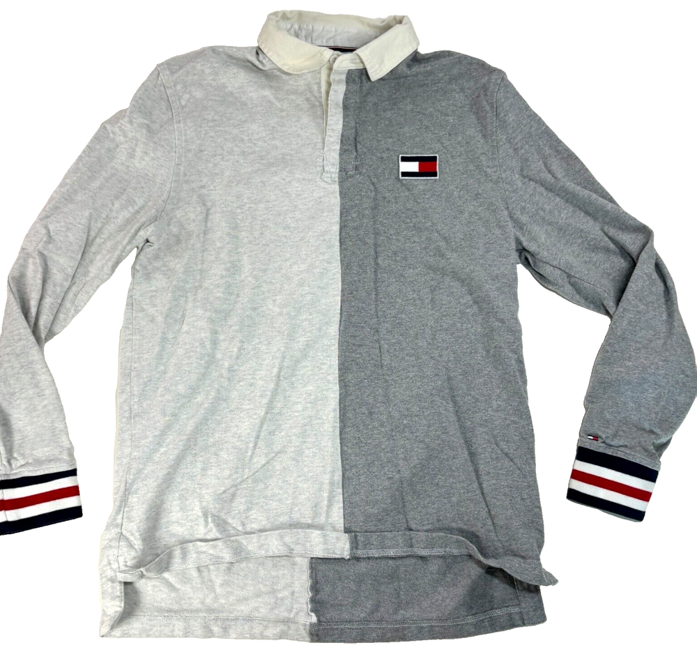 This Tommy Hilfiger rugby polo is a stylish throwback with its split-color design and bold Y2K logo. The long sleeves and comfortable fit make it perfect for layering or wearing solo. The quality fabric feels great, and the gray tones are versatile for any outfit. Love the vintage vibes—definitely a standout piece!