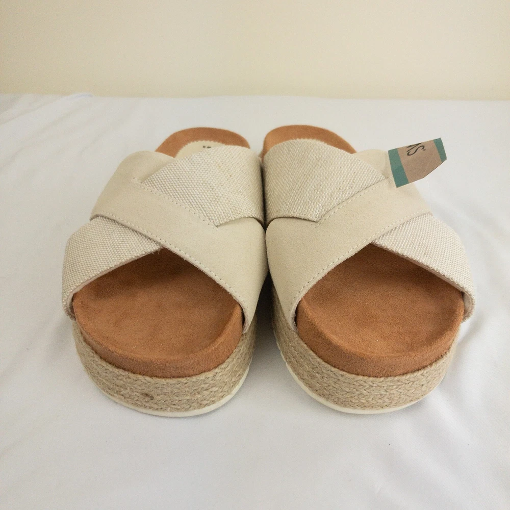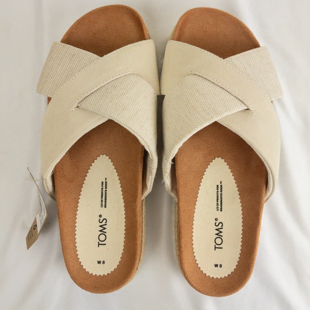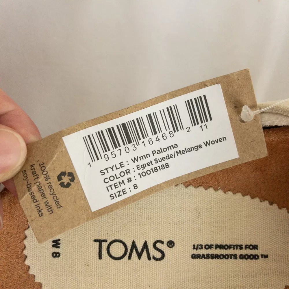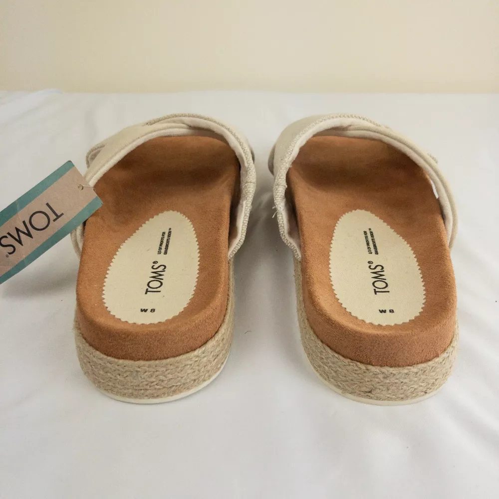 Item Description : Tom's Sandals Notes & Features : Style Name: Paloma Criss Cross Woven bottom Size : Women's Size 8 Measurements : Please see photos. If a measurement is missing, ask and we will get it for you. Condition : New with tags. Flaws : None found. Shipping : We always ship via the USPS with a tracking number ASAP, Monday-Saturday, and do our best to take care of you and the item at ALL times. Please see the Shipping, returns, and payments section for all available shipping options and prices. Packaging : The item is packaged/shipped in a sealed plastic bag inside of a box. Storage : All items are stored in a smoke free home. Any questions? Please ask; we are happy to answer. Thank you for looking!
