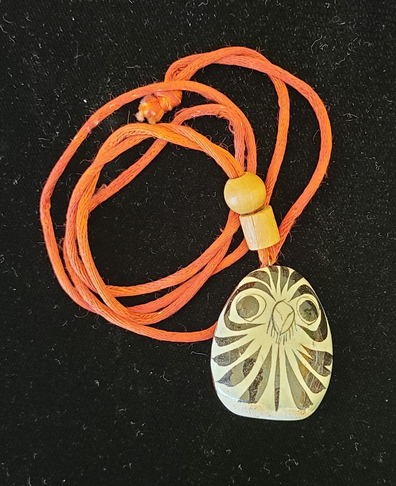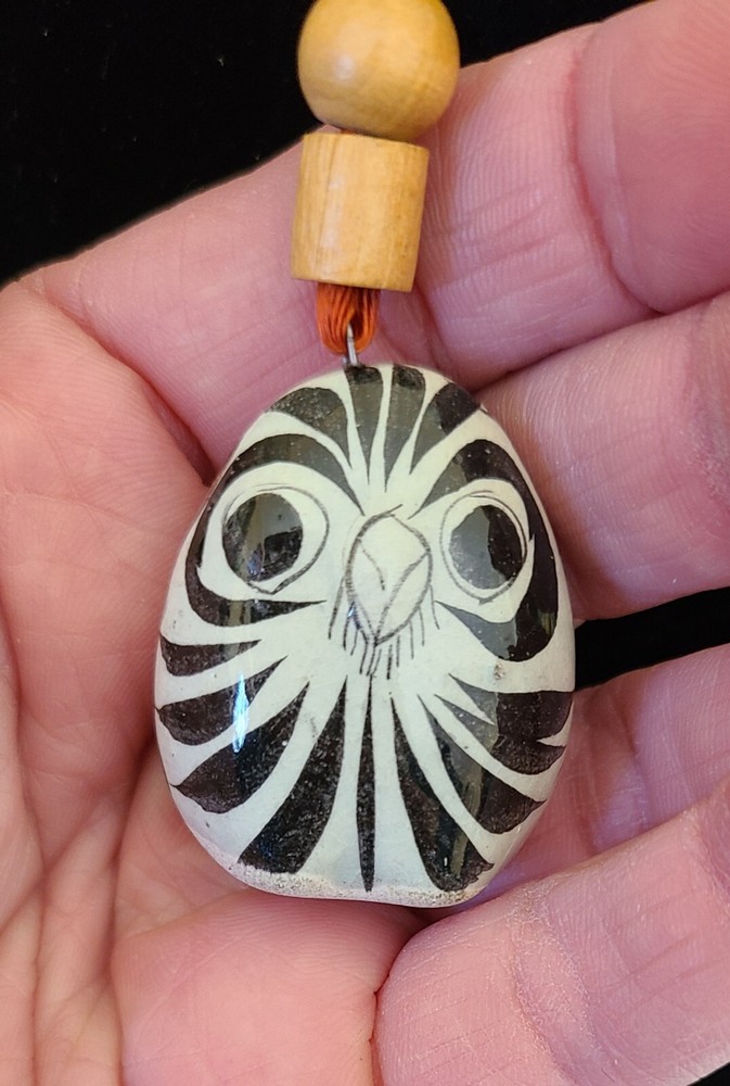 Super cute Tonala Mini Owl Necklace, Vintage, Pottery. Strung on a satin cord.