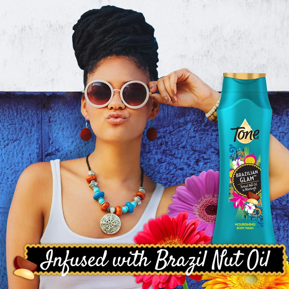 Tone Body Wash, Brazilian Glam, 16 fl oz Product Details Style: Brazilian Glam Size: 16 Ounce (Pack of 1) Brand: Tone MPN: COMINE006400 UPC: 017000155166 EAN: 0017000155166 Brand: Tone Item Weight: 1.17 Pounds Item dimensions L x W x H: 3.35 x 1.72 x 9 inches Scent: Brazillian Glam Age Range (Description): Adult Product Dimensions : 3.35 x 1.72 x 9 inches; 1.17 Pounds Item model number : COMINE006400 UPC : Manufacturer : Tone For glam girls seeking feels from the gorgeous beaches of Rio! Exotic, island inspired fragrance featuring tropical Maracuja fruit Infused with Brazil Nut Oil for extra moisture Leaves skin feeling smooth, beautiful and glamorous! Pair with Tone Brazilian Glam Body Scrub for fragrant exfoliation The Brazilian secret to glamorous skin…starts with Tone Brazilian Glam Body Wash! Take your senses to the gorgeous beaches of Rio and let the sweet breeze of tropical Maracujá wrap your skin for a luxurious exotic getaway! Infused with Brazil Nut Oil, this moisturizing formula leaves your skin feeling smooth, young, and beautiful – get ready to let your glamour shine!