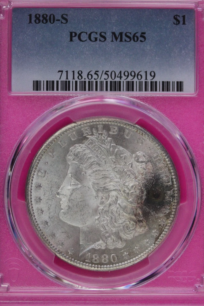 Certification: PCGS Strike Type: Business Total Precious Metal Content: 24 grams Precious Metal Content per Unit: 24 grams Country/Region of Manufacture: United States Brand/Mint: US Mint Coin: Morgan Silver Dollar Grade: MS 65 Year: 1880 Composition: Silver Fineness: 0.900