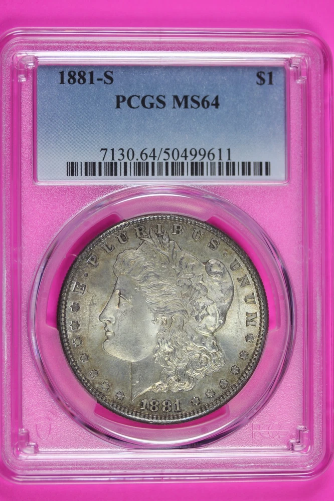 Toned 1881 S MS 64 Morgan Liberty Silver Dollar PCGS Certified Graded Slab 996