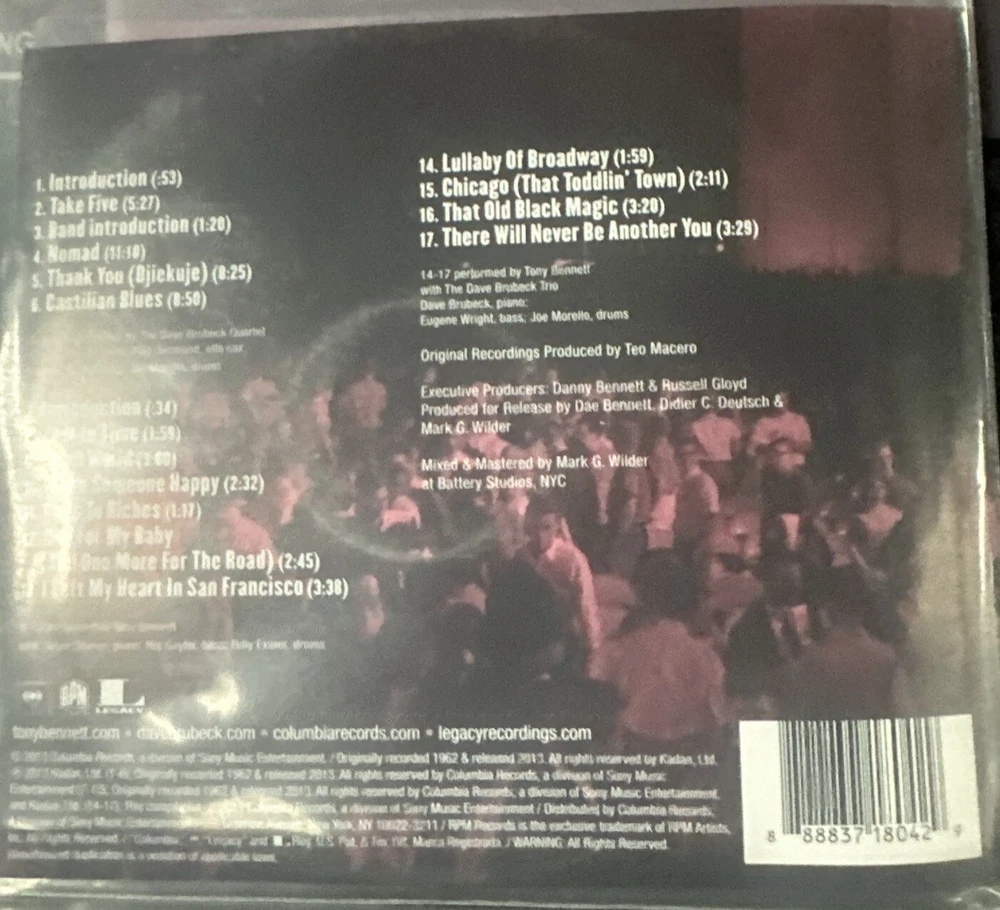 This Tony Bennett Dave Brubeck ‘The White House Sessions, Live 1962’ CD came from my father’s private music collection. The CD has no condition issues, could use a cleaning but it’s not dirty or anything. The inlay has no condition issues that I can see. Overall it’s excellent condition and a fine buy at $5.