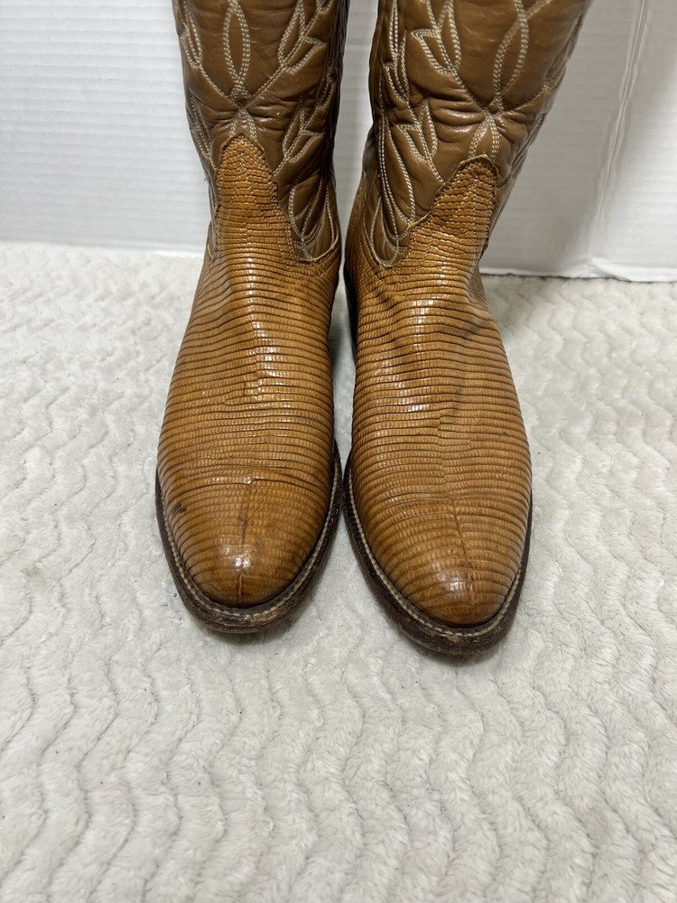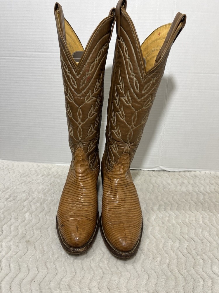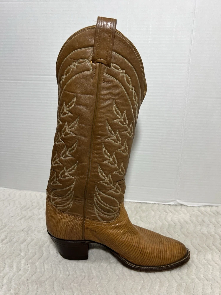 Tony Lama Women’s Size 6B Brown Leather Lizard Western Cowgirl Boots. Boot is in used condition and has signs of wear but boot is still in great condition. Upper leather is in great condition and clean , inside is clean and the soles are in great condition. Nice comfortable cowgirl boots for casual wear. Condition is pre-owned. Shipped with usps priority mail. Sold as pictures. Thank you! Feel free to message me for any questions. Thank you