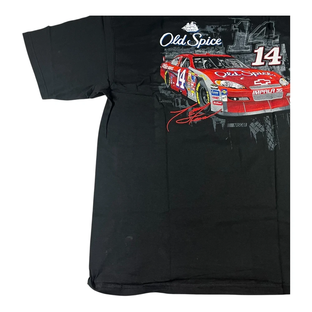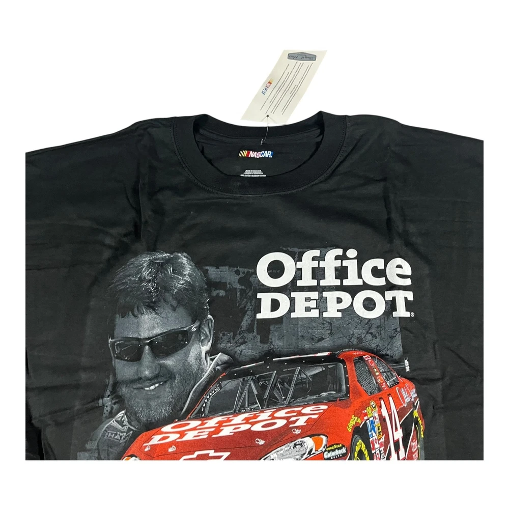 Overview Show your support for NASCAR legend Tony Stewart with this brand new, officially licensed t-shirt. Featuring the iconic #14 car sponsored by Office Depot and Old Spice, this shirt is a must-have for any racing enthusiast. Key Features Officially licensed NASCAR apparel Features Tony Stewart's #14 car Sponsorship graphics include Office Depot and Old Spice "Impala SS" branding "Stewart-Haas Racing" and "Team Collection" branding High-quality graphic print Brand new with tags attached Pit to Pit - 27 Inches Shoulder to Hem - 30 Inches Waist - 26 Inches Condition This item is in new condition, with original tags still attached. It has never been worn or washed.