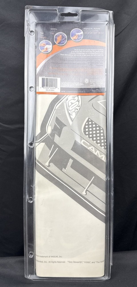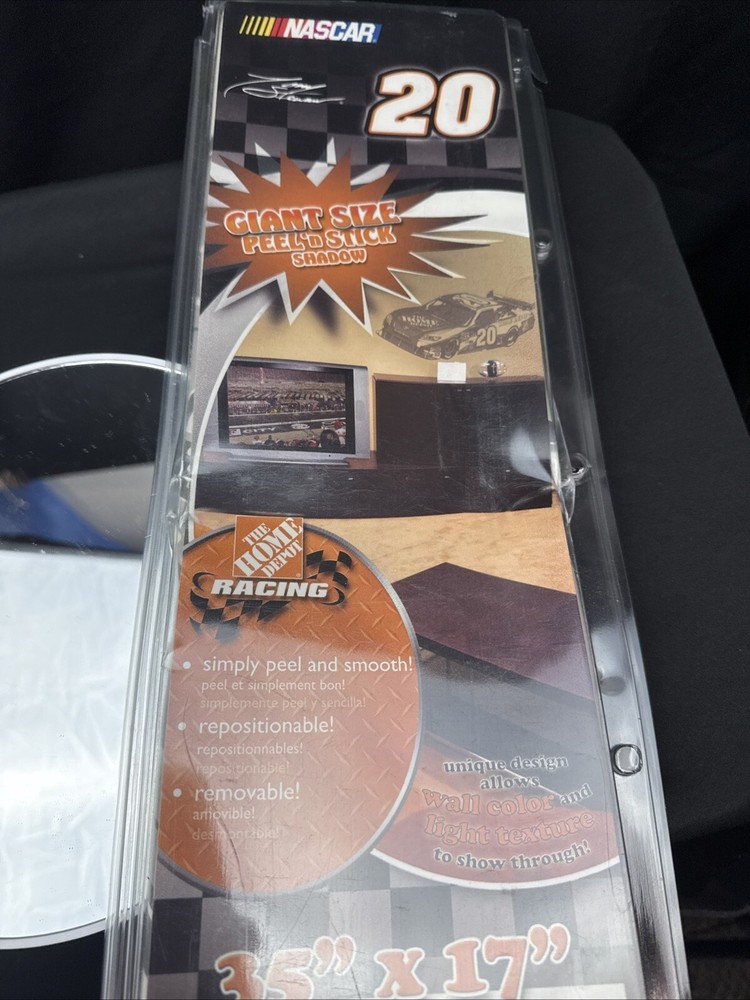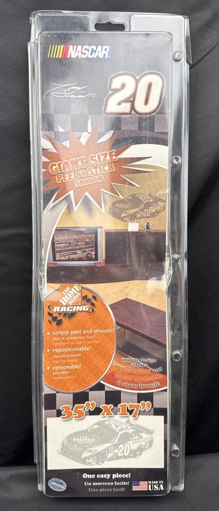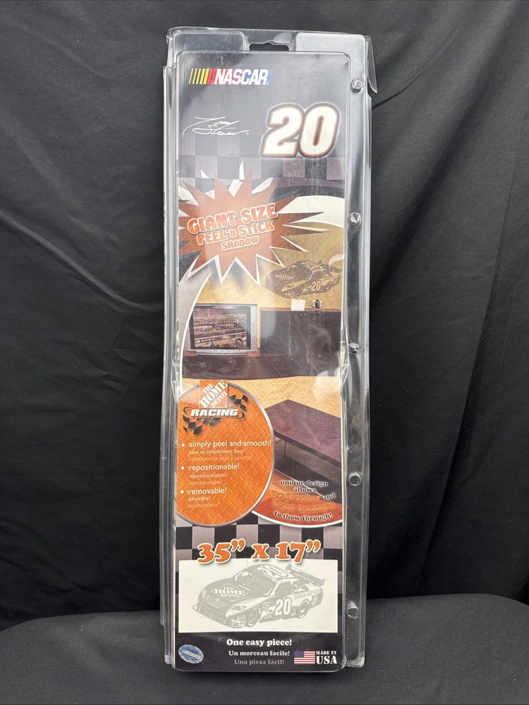 Add some racing spirit to your kid's room with this vibrant and colorful 37" x 13" peel and stick poster of Tony Stewart. The poster is officially licensed by NASCAR and features the Joe Gibbs Racing team's colors and logo. It is made in the United States and is perfect for any young fan of auto racing. This poster is brand new in its original packaging and has never been used. It is a great addition to any fan's collection or as a gift for a young racing enthusiast. Get your hands on this fun and unique piece of fan memorabilia today! Short money and high design impact!