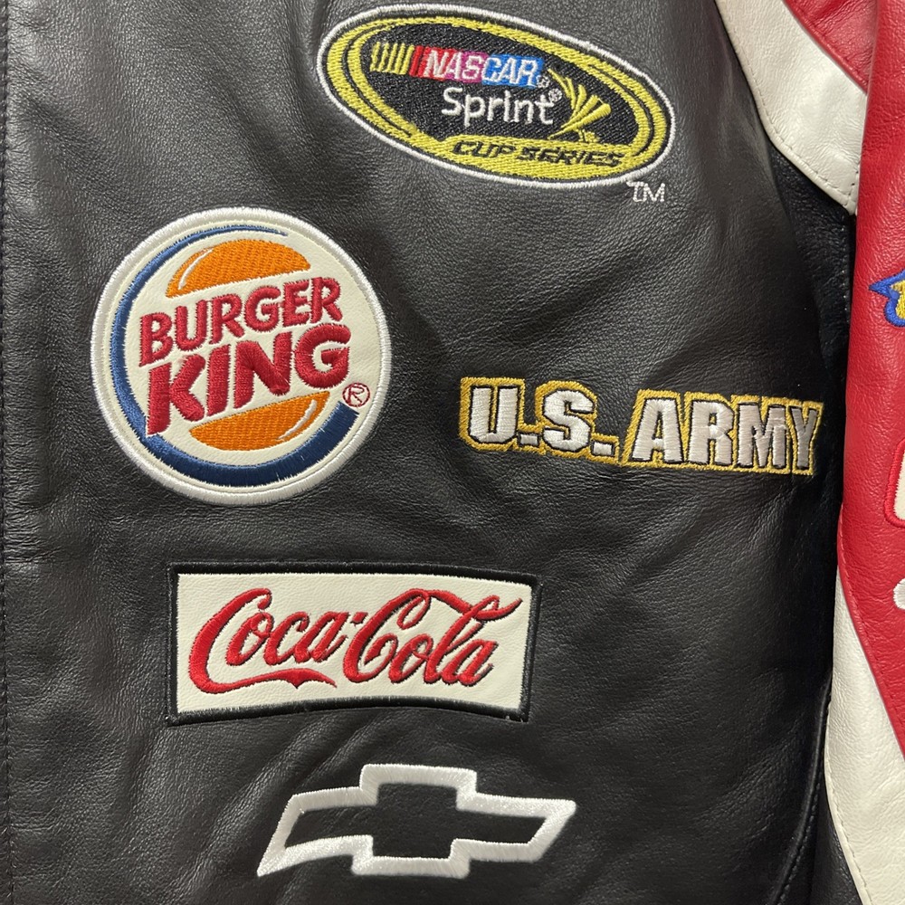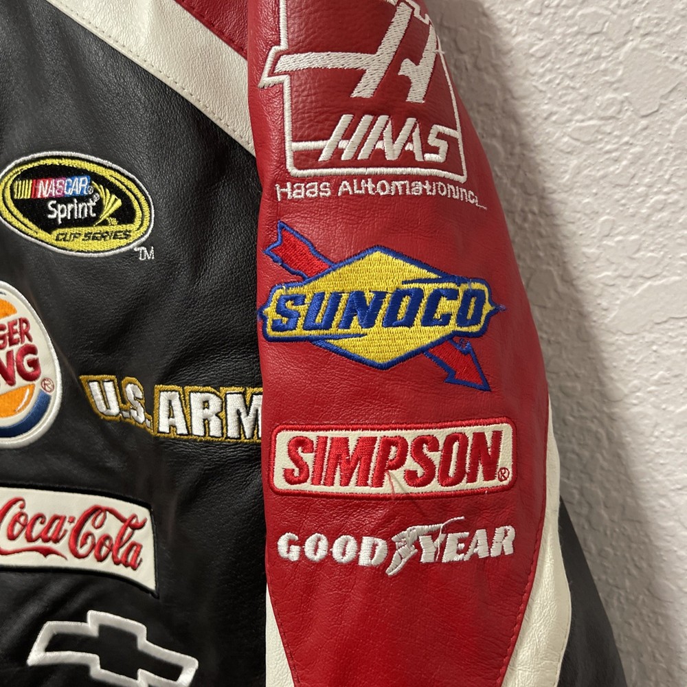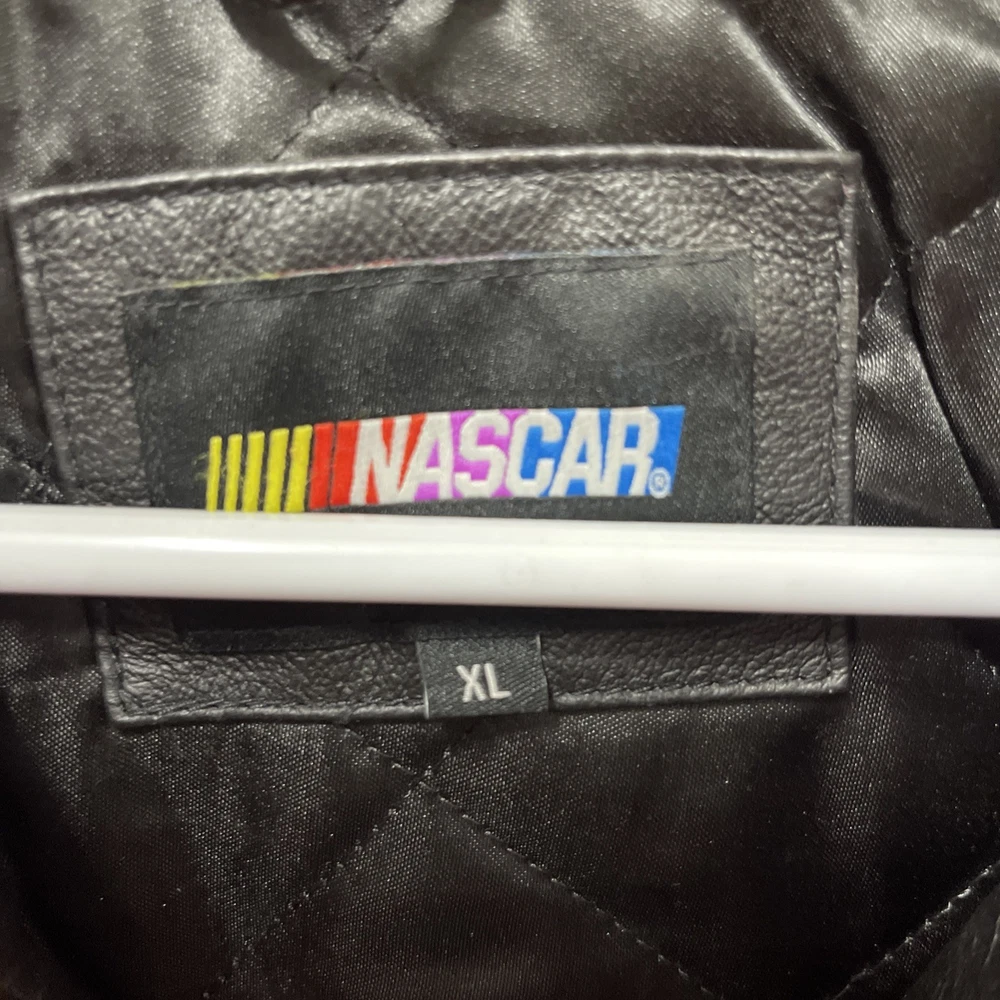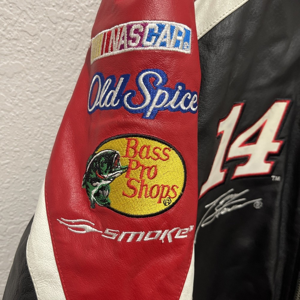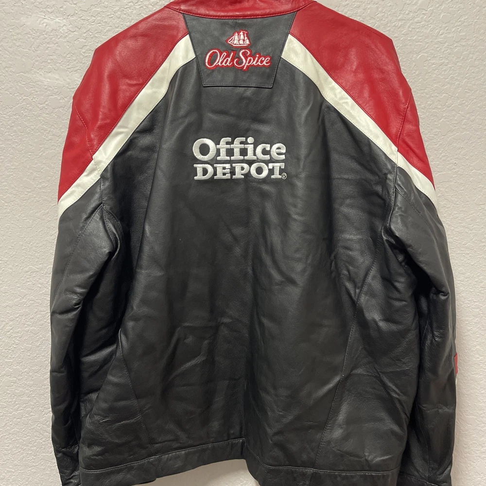 B10-0021: The Tony Stewart Vintage NASCAR Home Depot Racing Sports Bomber Jacket in size XL is an officially licensed and authentic piece for fans of auto racing and NASCAR. Made by Chase, this black jacket features the iconic Tony Stewart design, perfect for male sports enthusiasts looking to show their support for the driver. The bomber style and high-quality construction make it a stylish and comfortable addition to any fan's wardrobe, representing the legacy of Tony Stewart in the world of racing.