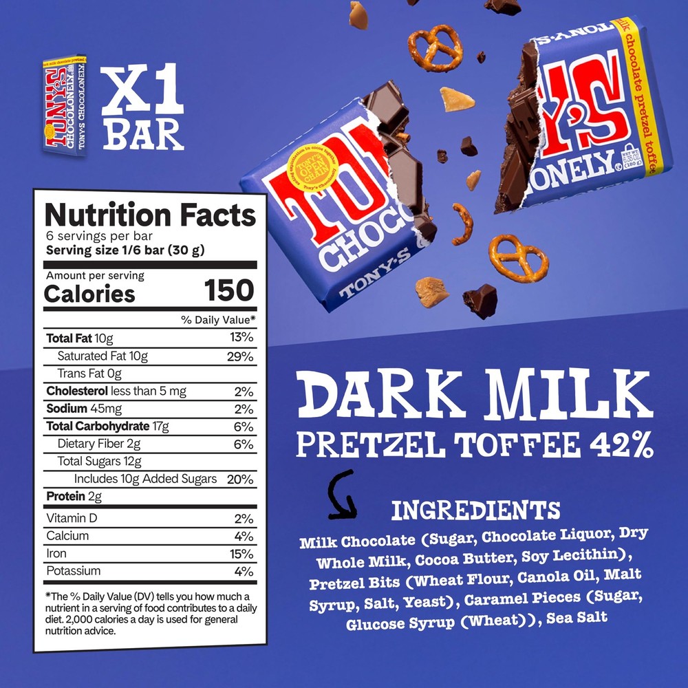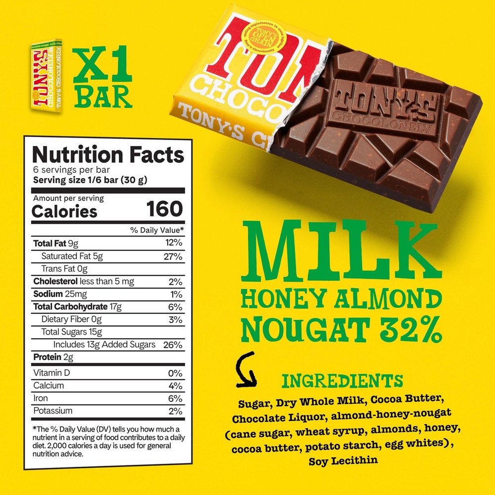 OUR MISSION TO END EXPLOITATION IN THE COCOA INDUSTRY: Tony’s Chocolonely exists to address the systemic issues in cocoa production. By sourcing directly from West Africa, we aim to end child labor, forced labor, and environmental harm. Every bar you buy supports our mission to create a cocoa industry free from exploitation. UNEQUALLY DIVIDED PIECES: Tony’s Chocolonely candy bars come with unequally divided pieces—on purpose! It’s our way of highlighting the inequality in the cocoa industry. While most bars are perfectly even, we think a little imperfection is a sweet reminder that fairness in cocoa production is still a work in progress. Enjoy a delicious snack with a purpose! THE ULTIMATE MILK CHOCOLATE MIX: Tony’s Super Duper Milk Chocolate Bundle brings together 6 of the best flavors: classic Milk Chocolate, indulgent Milk Chocolate Caramel Sea Salt, chewy Milk Chocolate Nougat, tangy White Chocolate Raspberry, crunchy Milk Chocolate Pretzel Toffee, and nutty Hazelnut Milk Chocolate. Perfect for snacking, sharing, or gifting! TONY’S 5 SOURCING PRINCIPLES: Tony’s Chocolonely upholds 5 key sourcing principles to support ethical and sustainable cocoa production: traceable beans for full transparency, paying a higher price to help farmers earn a living income, fostering long term partnerships with farmers, empowering strong farmers through better practices, and uplifting productivity and quality for sustainable growth. JOIN THE MOVEMENT, MAKE A DIFFERENCE WITH EVERY BITE: As a ChocoFan you can support chocolate made with ethically sourced cocoa. Choose consciously, support campaigns, and advocate for transparency in the cocoa industry. When you purchase Tony’s Chocolonely, you’re helping drive change to end exploitation in cocoa production.