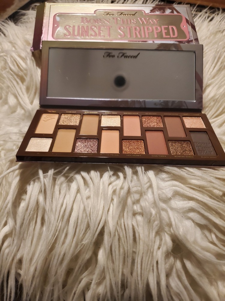 Bring sunset-inspired warmth to your makeup looks with the Too Faced Born This Way Sunset Stripped Palette. Featuring 16 rich and creamy nude shades, this palette is perfect for creating modern, everyday glam or dramatic eye looks. Palette Features: Authentic Too Faced palette 16 warm, modern nude shades Blend of highly pigmented matte and metallic finishes Smooth, creamy formula for easy application and long-lasting wear. Inspired by sun-kissed skin and infused with coconut water to help replenish skin moisture Perfect for natural daytime looks or bold evening glam. Ideal for makeup lovers, collectors, or professional artists looking for versatile, neutral-toned shades. ⭐ Fast shipping ⭐ Great deal ⭐ Buy with confidence Don’t miss your chance to own this popular and limited Too Faced palette—grab it before it’s gone!