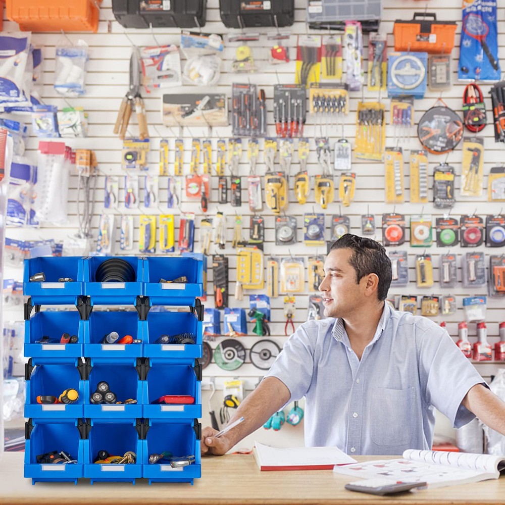These Stacking Bins store and organize a wide variety of small parts while still keeping them within reach, making it easier to store and take them to any work area. Stack vertically to bail out space, display them on a shelf, or hang onto a railing,high-quality plastic ensures that it will not crack or shatter. They are an ideal storage solution for nuts and bolts, paper clips, binder clips, embellishments, buttons and much more! 【CONVENIENT STORAGE】: These plastic storage bins are both stackable and wall mounted, or attached to a pegboard, store, and organize a wide variety of small and big parts while still keeping them within reach, Perfect for organizing your home, office, workshop, shop, or other areas. 【CLASSIFIED STORAGE 】: Plastic storage bins with labels and transparent panels. They are ideal storage solutions for nuts and bolts, paper clips, binder clips, embellishments, buttons, hardware parts, and much more. 【SAVING SPACE】: Stacking vertically to save space, you can display the stackable storage bins on a shelf, stack them or hang them onto railings for walls. High-quality plastic ensures that it will not crack or shatter. 【GOOD QUALITY】: Tool bins are made from polypropylene, it is Water, rust, and corrosion proof, anti-impact, and also it is a good industrial storage bin. 【PERFECT SIZE】: L 7.87" x 5.3" W x 4.33" H, making it easy to store and take them to any work area. 😊Please pay attention to the size of each set of products, if the size is not suitable, please choose another size or contact customer service to avoid bringing you a bad shopping experience.
