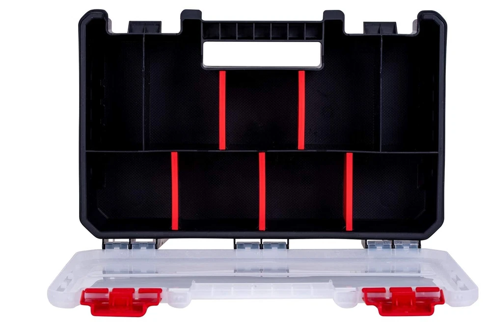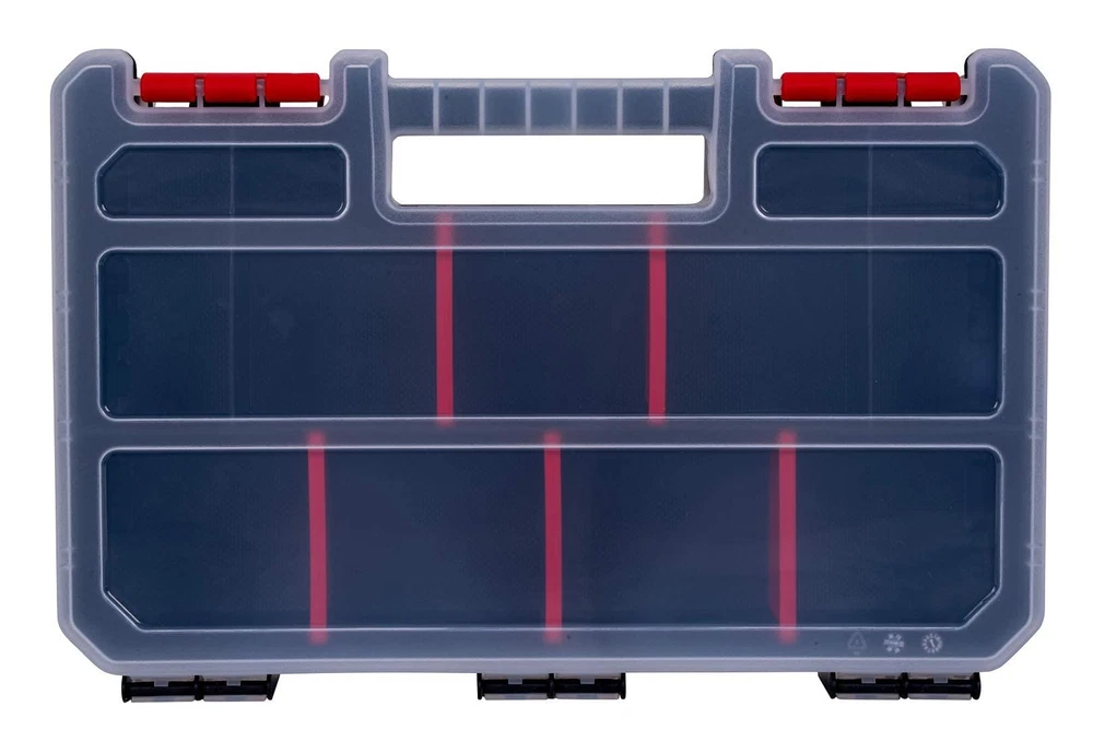 SMALL PARTS ORGANIZER: 11” / 28 cm toolbox organizer with clear lid. It’s the perfect tool organizer for small parts. The small parts organizer contains 9 compartments within which to small parts, bolts, nuts, screws and nails. There’s 5 removable dividers which allows for greater flexibility when arranging your tool storage. The clear cover allows you to view your tools easily. STACKABLE: The home improvement storage box is stackable. Easily in your garage or home. Mix and match with other storage options to get the correct option for you. If you’re looking for nail organizers and storage, this is the perfect solution for you! There’s lots of space for your everyday small parts with this handy organizer box. PORTABLE: The tool organizer and storage box features an integrated durable handle design which makes carrying easy. The secure plastic latches mean your tools stay safe and secure. Add it to your everyday tools bag or stack in your garage with other organizer bins. It’s easy to take with you anywhere! SECURE: Keep your small parts safe and organized with the tool storage bin. Now there’s no need to worry about losing small parts, screws or nails with the tool organizer. The screw organizer lid is made from clear reinforced polypropylene which means it won’t snap or break with regular use. It’s heavy duty, tough and virtually indestructible. QUALITY & DURABLE: The toolbox container is made using only high quality and durable materials. The heavy duty and robust design is made from polypropylene plastic. At , we don’t compromise on the quality of our products. The tool container box has been designed and manufactured in Israel to meet our advanced specifications.