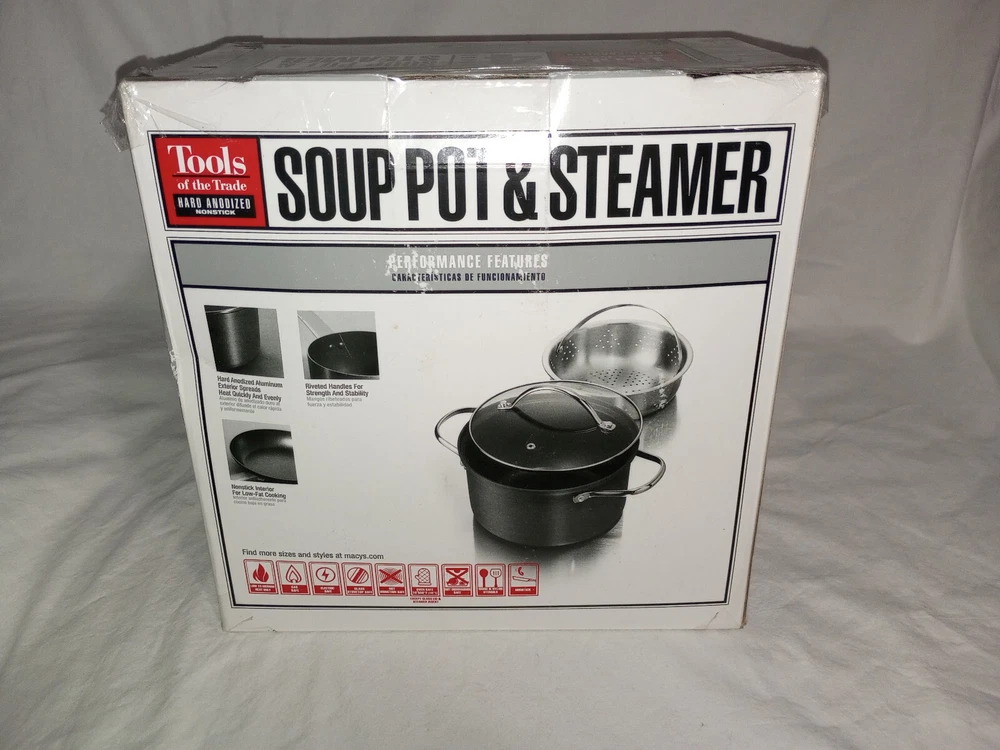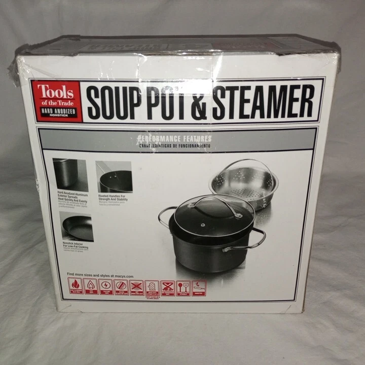 Tools Of The Trade Hard Anodized Nonstick 4 Qt Soup Pot Steamer Insert NIB