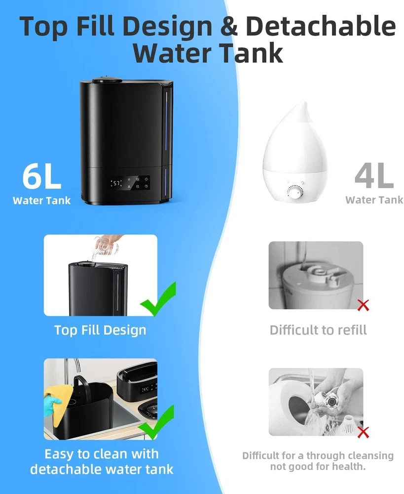 Top Fill 6L Humidifier with Smart Control - Ideal for Large Rooms & Aromatherapy