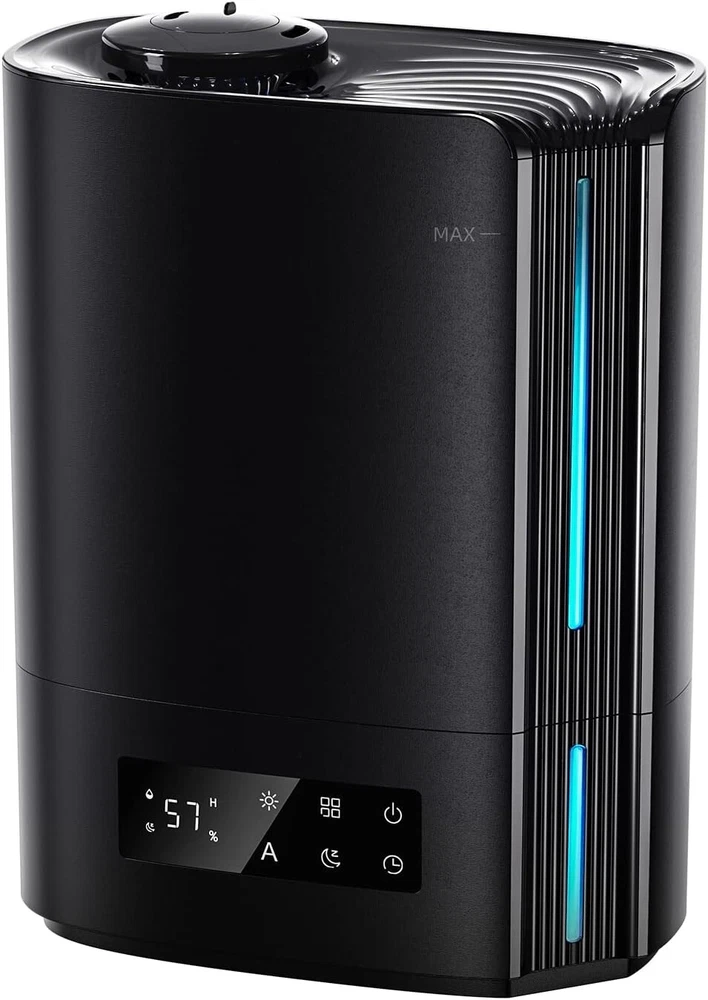 Power Source: Electrical, Battery, Solar Type: Tabletop Features: Humidistat, Smart Humidistat, Top Fill, Automatic Shut Off, Whisper-Quiet Finish: Glossy Operating Sound Rating: 20 dB Floor Area: 500 Square Feet Special Feature: Smart Humidistat, Top Fill, Auto Shut Off Product Dimensions: 5.63"d X 9.65"w X 13.4"h Shape: Rectangular Control Method: Touch Wattage: 22 Watts Recommended Room Size: Large, Medium, Extra Large Item Depth: 5.63 in Power: 22 W UPC: Does Not Apply Item Weight: 3.86 lb Material: Plastic Coverage: 500 sq ft Smart Home Compatibility: Universal Operation Mode: Ultrasonic Room: Bedroom, Living Room, Nursery Included Components: Humidifier Brand: Unbranded Tank Capacity: 1.6 gal Application: Whole Room, Personal, Whole House, Car, Recreational Vehicle (RV), Refrigerator Voltage: 120 V Smart Home Protocol: Wi-Fi gtin13: Does Not Apply Timer Control: Timerless Humidification Method: Ultrasonic Room Type: Bedroom, Living Room, Nursery Color: Black