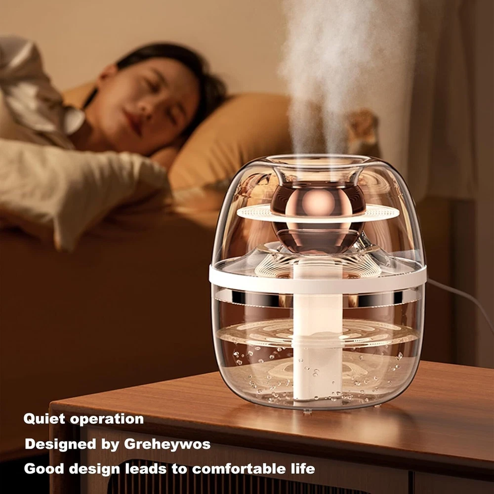 Description Beautifully Designed Humidifier: Greheywos cool mist humidifier with 2.0L capacity helps you consistently balance and regulate the humidity in your home and breathe easier and healthier. Easy to use and fast to run, Helping you quick relief in minutes! No more troubles with congestion, coughing, and dry skin. Ideal for bedrooms, kids’ rooms, offices, and indoor plants. Easy Top Fill Design: This portable humidifier allows you to fill up without having to flip the tank or spill water on the floor. You can easily clean the interior of the tank through its large opening. The straightforward base construction ensures there are no hard-to-reach corners during cleaning. Maintaining a healthy environment has never been this effortless. 23dB Whisper-Quiet Operation: The built-in mute setting of the baby humidifier makes the humidifier quiet and energy-saving for a long time. With noise level as low as 23dB and all lights off. Made with BPA-free materials and featuring quiet operation, No humming, whistling or crackling. This durable Whole-House Humidifier steadily and efficiently dispenses the soothing cool mist you crave. Three Spray Mode: The cold mist humidifier has three spray methods: continuous spray, double-hole alternate spray and interval spray. Continuous spray can be used for 10 hours to automatically shut down,and interval spray can be used for 20 hours. And automatically shuts off before it runs dry. Just fill the tank, turn it on, and enjoy healthy humidity. With Night Light: This desktop humidifier comes with a night light, long press the button to turn on the night light, giving you a company in this quiet night. Long press the button again to turn off the light, and it will not affect sleep because of the light. Five-year Warranty: Provide five-year warranty or exchange service. No need to worry about returns if your product is defective or used - we'll promptly send you a replacement. Tips: The water-conducting swab should be soaked the first time it is used. Breathe Easy with Greheywos Humidifier Maintain a healthy and comfortable environment with the Greheywos Top Fill Humidifier. Its easy-to-use design and quiet operation make it perfect for any room. Effortless Humidity Control Breathe Easy with Greheywos Humidifier Experience the perfect balance of humidity with the Greheywos Top Fill Humidifier. Its easy-to-use design and whisper-quiet operation create a soothing environment for your home, office, or nursery. Greheywos K30 Humidifier Beautifully Designed Humidifier Easy Top Fill Quiet Operation Three Spray Mode With Night Light The video showcases the product in use. The video guides you through product setup. The video compares multiple products. The video shows the product being unpacked. Greheywos K30 Humidifier Classic crystal design humidifier Minimalist sculpture design PC transparent shell Presenting a classic appearance Humidifier for Healthy Indoor Air Greheywos Top Fill Humidifiers for Bedroom and Home Enjoy a comfortable and healthy indoor environment with the Greheywos Top Fill Humidifier. Its 2.0L tank capacity and easy top-fill design make it convenient to use and maintain. First use method, or re-use after a long time: 1. Top fill Large opening design, Easy filling, Easy to clean 2. Soak Cotton swab Moisten cotton swabs thoroughly before use 3. Load the swabs Load the wet swab into the humidifier 4. Install the top cover Install the top cover, Turn on the humidifier with one click, Immediate relief from dryness