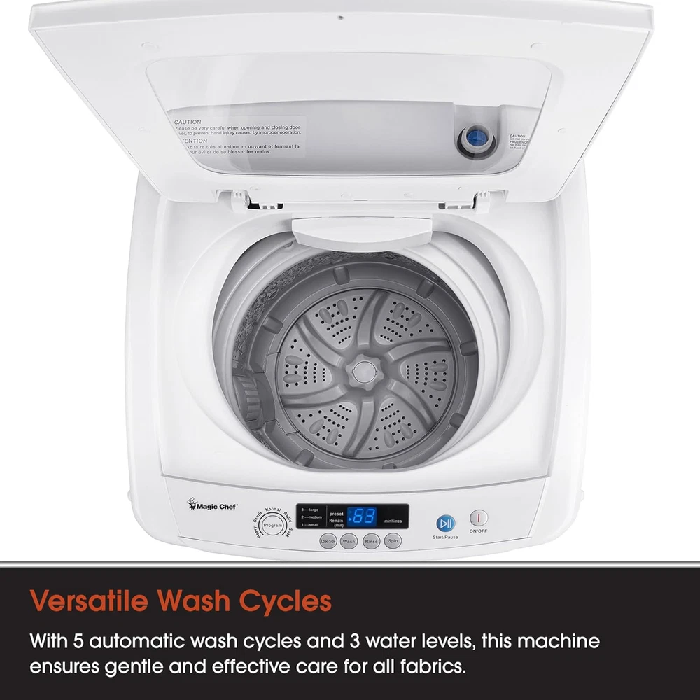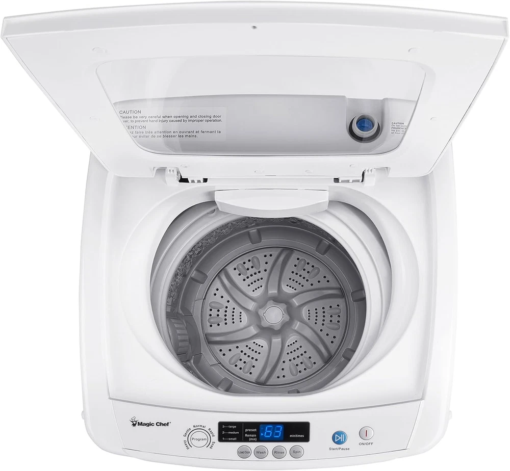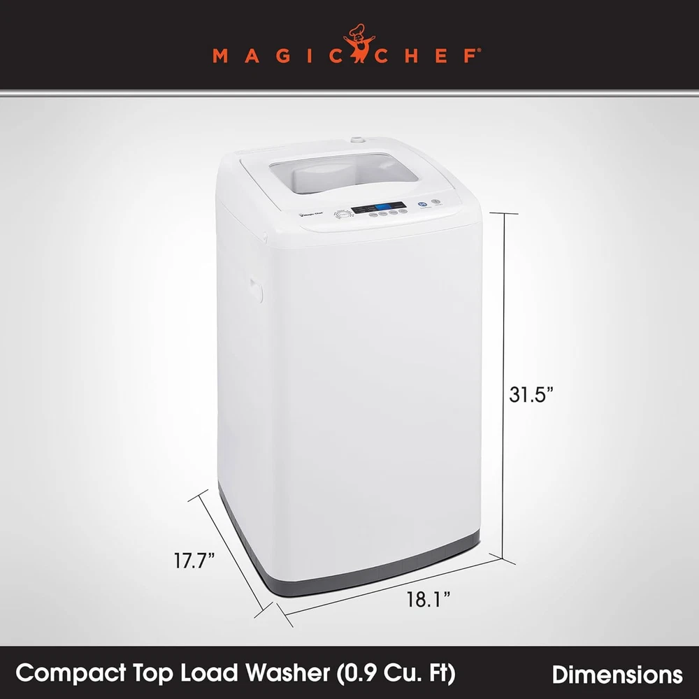 Store New Arrivals Add to Favorite View Feedback Contact Top Load Compact Washer with LED Display, 6 Cycles, Delay Start Function, 3 Water Levels & 3 Temperature Settings, White, 0.9 Cubic Feet Description Item model number MCSTCW09W2 Capacity 0.9 Cubic Feet Material Type Plastic Controls Type Push Button Installation Type Freestanding Product Dimensions 18.1"D x 17.7"W x 31.5"H Material Plastic Access Location Top Load Efficiency High Efficiency Standard Cycles 5 Finish Type Painted Finish Control Console Push Button Cycle Options standard Special Features Quick-connect adapter, Auto Unbalance Detection, Automatic Shut-off, Built-in Filter Special Feature Quick-connect adapter, Auto Unbalance Detection, Automatic Shut-off, Built-in Filter Part Number MCSTCW09W2 Color White Model Info MCSTCW09W2 Max Spin Speed 1200 RPM Size 0.9 cu. ft. Space-Saving Washer: Ideal for small spaces such as apartments, dorms, and RVs, the compact design of the Magic Chef Washer ensures you can enjoy full washing capabilities without taking up valuable room Customizable Wash Cycles: Featuring 5 fully automatic wash cycles and 3 water levels, you can easily tailor each wash to provide optimal care for a wide variety of fabrics, ensuring your clothes are always treated gently and effectively Quick-Connect Adapter: Quick-connect adapter allows you to use your sink as a water source, offering added flexibility and convenience, especially in spaces without a dedicated laundry area Auto Unbalance Detection: Automatic unbalance detection system adds more water to the tub to redistribute clothing evenly, preventing imbalances and maintaining top-tier washing performance User-Friendly Features: Easy-access control panel and see-through lid make it simple to monitor your clothes as they wash, while the automatic shut-off after the cycle end signal provides added peace of mind Product Description ABOUT US We offer the best prices around on high quality products. Our E-store includes media such as books, movies, music and games while offering electronics, toys, sporting apparel, clothing, tools, general home, garden items and more. SHIPPING We are always working hard to ensure your package arrives as soon as possible. Please understand that some factors like weather, high postal traffic, and the performance of shipping companies are outside of our control. We offer free shipping to the lower 48 states and ship within 2 business days of payment, usually sooner. We do not accept P.O. Boxes. Please provide a physical address. For shipping outside of the continental USA, we only use eBay's Global Shipping Program.The item is shipped to KY and then sent to the rest of the world. International customers are responsible for all duties and taxes. Continue to check out in order to calculate costs for shipping the item to your country. Messages regarding eBay's Global Shipping Program MUST be directed at eBay EXCLUSIVELY. RETURNS We offer a 30-Day Return Policy on items which you are not completely satisfied with. You have the option for a full-refund or an exchange of the item. No returns are available on items shipped outside of the USA. PAYMENT We accept PayPal. CONTACT US This page content is yet to come Please ad us to your favorite seller and visit again later Thank You CUSTOMER SATISFACTION We try our very best to make sure every customer is completely satisfied. If there's a problem, message us! We're happy to help. WE ACCEPT Copyright © 2021 AutoDS. | All Rights Reserved