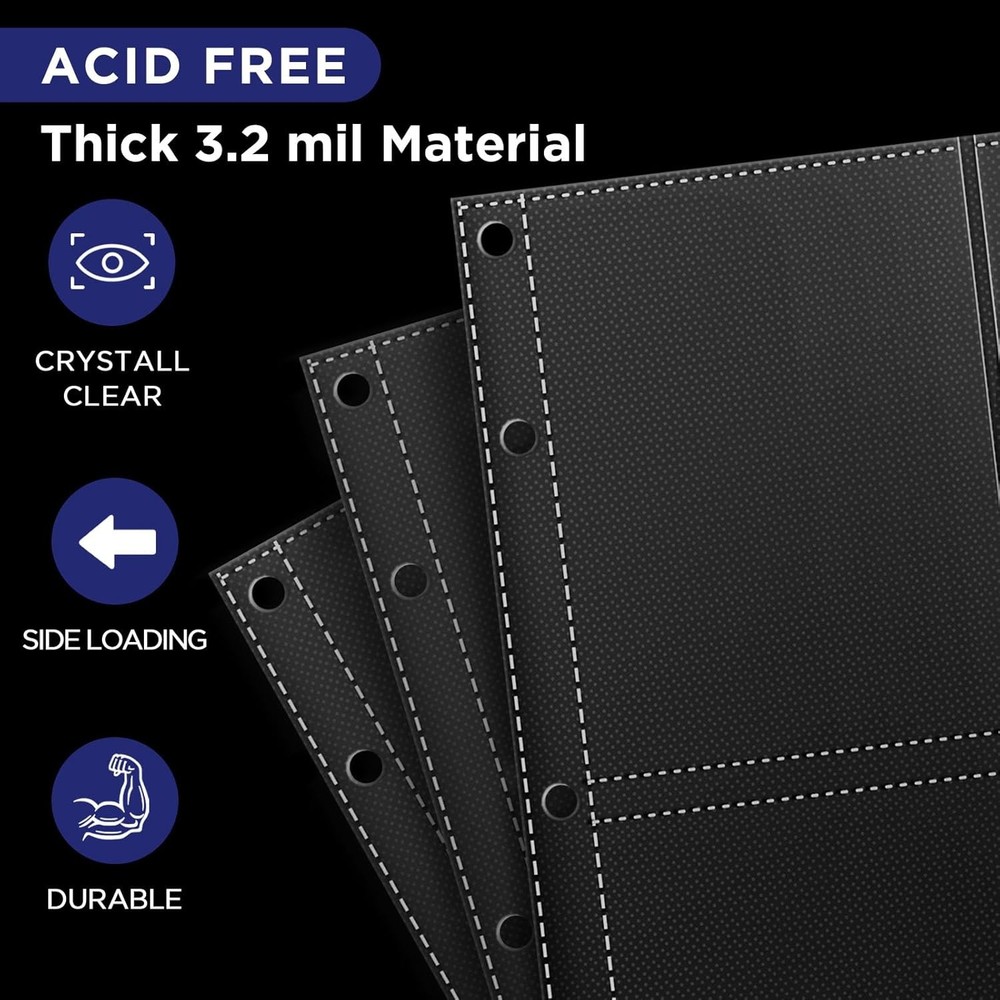 Store New Arrivals Add to Favorite View Feedback Contact Top Loader Sleeves 4-Pocket Trading Card Storage Refill Binder Pages – 25 Pack Description Item model number CHJ6-25 Sheet Size 3.25 x 4.25 inches Number of Items 25 Color Black Material Polypropylene (PP) Material Type Polypropylene (PP) Manufacturer Part Number CHJ6-25 Style Minimalist Item Weight 0.23 Kilograms Product Dimensions 9.25 x 7.5 x 0.04 inches Top Loader Binder Pages: Pocket size is 3.25 x 4.25 inches, special designed for 3" x 4" top loaders (fit for 35pt-55pt thickness cards). Enjoy the double protection and secure card display within top loaders. Acid Free: Acid free and PVC free. Keep and storage precious collection with ease. Premium Protection: The baseball card storage sleeves are crafted with 3.2 mil ultra-thick material and an anti-slip interior layer to keep cards securely in place. Say goodbye to slips, scratches, or accidental drops! Massive Capacity: 25 pages hold up to 200 cards (4 pockets per page, double-sided). Perfect for bulk storage or showcasing prized trading card collections. 3-Ring Binder Ready: 5 holes design with 2.75" and 4.25" hole spacing, compatible with 8.5x11" binders and 5.5x8.5" binders. Side-Loading Design: Effortlessly slide cards in and out without risking damage. Ideal for quick access or frequent swaps. Durable & Long-Lasting: Waterproof and dustproof construction preserves card quality for years. Product description Organize, Protect, and Display Your Card Collection in Style! Why Choose These Binder Sleeves? Showcase with Confidence: Display your top loader-protected cards without fear of dents, creases, or dust. Turn any binder into a professional-grade portfolio! Versatile Use: Perfect for sports cards (baseball, football, basketball), TCGs, mini photos and more Space-Saving Design: Slim profile maximizes storage while keeping collections easily accessible. Pair with a sturdy 3-ring binder for a sleek, portable storage solution. Keep your entire collection organized, protected, and ready to impress! Top Loader Binder Pages • Sleeve Dimensions: 7.48" x 9.25" • Pocket Dimensions: 3.25" x 4.25" (fits 35-55pt 3" x 4" toploaders). • Hole Distance: 2.75" and 4.25" (standard 3-ring binder compatible). • Included: 25 pages (100 pockets total). Side-Loading Design Effortlessly slide cards in and out without risking damage. Ideal for quick access or frequent swaps. 3-Ring Binder Ready 5 holes design with 2.75" and 4.25" hole spacing, compatible with 8.5x11" binders and 5.5x8.5" binders. Durable & Long-Lasting Waterproof and dustproof construction preserves card quality for years. ABOUT US We offer the best prices around on high quality products. Our E-store includes media such as books, movies, music and games while offering electronics, toys, sporting apparel, clothing, tools, general home, garden items and more. SHIPPING We are always working hard to ensure your package arrives as soon as possible. Please understand that some factors like weather, high postal traffic, and the performance of shipping companies are outside of our control. We offer free shipping to the lower 48 states and ship within 2 business days of payment, usually sooner. We do not accept P.O. Boxes. Please provide a physical address. For shipping outside of the continental USA, we only use eBay's Global Shipping Program.The item is shipped to KY and then sent to the rest of the world. International customers are responsible for all duties and taxes. Continue to check out in order to calculate costs for shipping the item to your country. Messages regarding eBay's Global Shipping Program MUST be directed at eBay EXCLUSIVELY. RETURNS We offer a 30-Day Return Policy on items which you are not completely satisfied with. You have the option for a full-refund or an exchange of the item. No returns are available on items shipped outside of the USA. PAYMENT We accept PayPal. CONTACT US This page content is yet to come Please ad us to your favorite seller and visit again later Thank You CUSTOMER SATISFACTION We try our very best to make sure every customer is completely satisfied. If there's a problem, message us! We're happy to help. WE ACCEPT Copyright © 2021 AutoDS. | All Rights Reserved