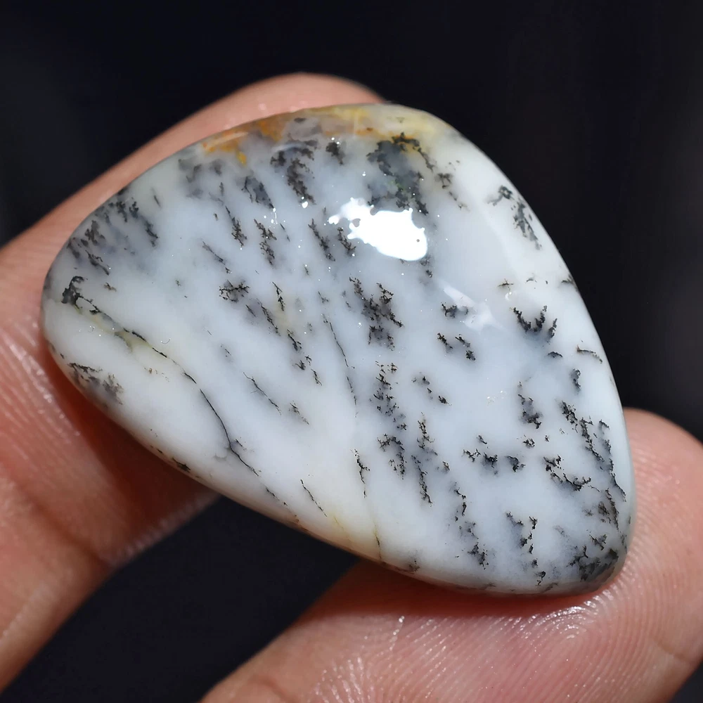 Gemstone Color: White Gemstone Shape: Oval Country of Origin: Australia Cut Grade: Excellent Country/Region of Manufacture: India Gemstone Type: Dendrite Opal Gemstone Creation: Natural Gemstone Treatment: Not Enhanced Gemstone Form: Polished