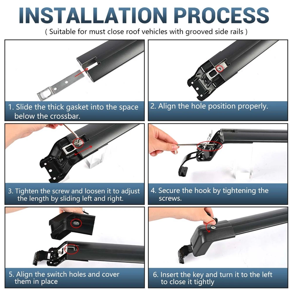 Product Description Item model and Compatibility Table are just a reference, take size as a standard. Please check our item size photo before paying to avoid choosing WRO NG SIZE item for your car !! Features : Brand new and Professional grade quality. Rubber strip included for extra grip. Elliptical shape to minimize wind resistance. Ratchet Tensioners Allow Easy Adjustment. Always Ensure Bars Are Securely Fitted Before Driving. Designed for Cars that Do Not Have Raised Roof Rails Already Fitted. Lockable Anti-Theft Design - 2 Locks Per Bar (includes keys). Wide Fitment: Suitable for any vehicle with a roof width range of 138cm-146cm and roof rain gutter distance between 122cm-130cm and without roof rails; Specifications: Color : Black Roof Bars Size : Details show in the picture Bar Length :110 cm(Adjustable length 5cm) Quantity : Supplied in Pairs Max Load : 75kgs (load must be uniformly distributed across the bars) Package Included: 2 x Car Roof Bars 2 X keys Payment Shipping Return Contact US Feedback We accept PayPal, MasterCard, Visa, Google Pay, Apple Pay, American Express, Credit Card, Debit Card, Gift Card. If you can not pay in time, please contact us. 1. Orders processed within 24hours of payment verification. 2. We only ship to confirmed Paypal addresses. Your PAYPAL address must match your Shipping address. 3. Service transit time is provided by the carrier. Transit times may be a little delayed during holiday season. 4. We will track the shipment and get back to you as soon as possible with a reply. Our goal is customer satisfaction! 1. Accept Return in 30days for refund or replacement, goods in resalable condition 2. Offer 90 DAYS for repair warranty 3. message for address and reference number before return(note: unannounced parcel may be returned to wrong address, seller will not be responsible for this. 1.We have always been doing our best to provide the best service and reliable products for every customer. 2.Please do not hesitate to contact us to resolve the issues.We will reply your emails and questions within 48 hours. ☆We're always working to improve the quality of our services,we are hoping to get your positive feedback and 5 Stars in return,so that we could do better for you in the future! ☆If you have any problem or unsatisfied with our products, please do contact us first,we will do our best to satisfy you.Your 100% satisfaction is our power to advance! Payment We accept PayPal, MasterCard, Visa, Google Pay, Apple Pay, American Express, Credit Card, Debit Card, Gift Card. If you can not pay in time, please contact us. Shipping 1. Orders processed within 24hours of payment verification. 2. We only ship to confirmed Paypal addresses. Your PAYPAL address must match your Shipping address. 3. Service transit time is provided by the carrier. Transit times may be a little delayed during holiday season. 4. We will track the shipment and get back to you as soon as possible with a reply. Our goal is customer satisfaction! Return 1. Accept Return in 30days for refund or replacement, goods in resalable condition 2. Offer 90 DAYS for repair warranty 3. message for address and reference number before return(note: unannounced parcel may be returned to wrong address, seller will not be responsible for this. Contact US 1.We have always been doing our best to provide the best service and reliable products for every customer. 2.Please do not hesitate to contact us to resolve the issues.We will reply your emails and questions within 48 hours. Feedback ☆We're always working to improve the quality of our services,we are hoping to get your positive feedback and 5 Stars in return,so that we could do better for you in the future! ☆If you have any problem or unsatisfied with our products, please do contact us first,we will do our best to satisfy you.Your 100% satisfaction is our power to advance! powered by