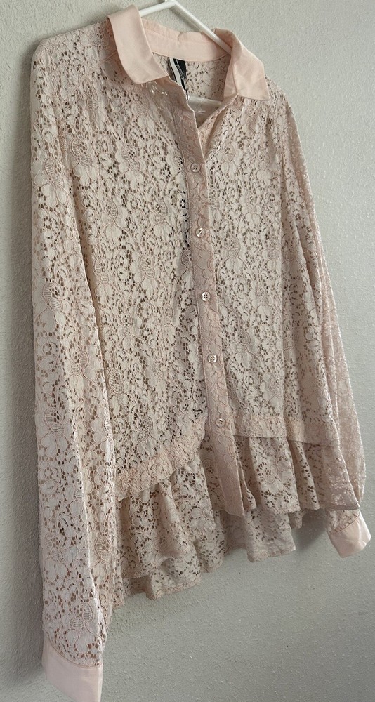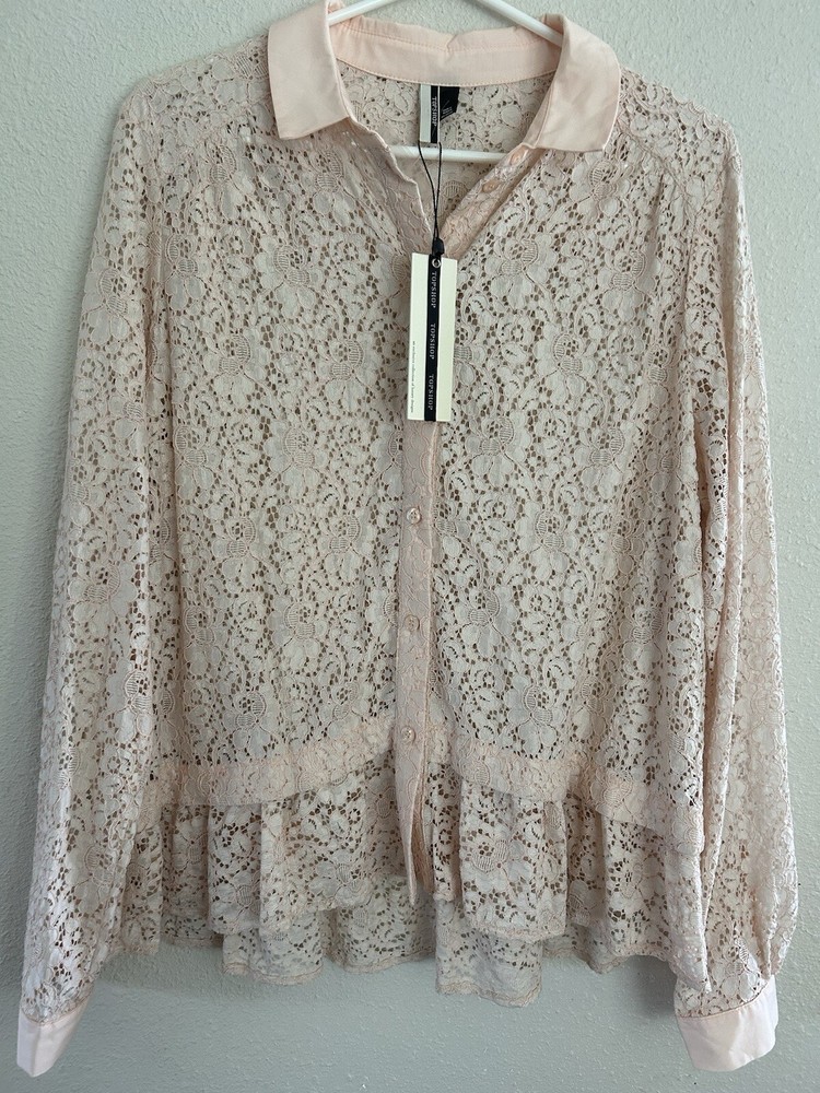 Top Shop Long Sleeve Pink lace Button Down Top Size 10. Condition is New with tags. Shipped with USPS Ground Advantage.