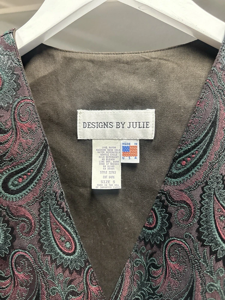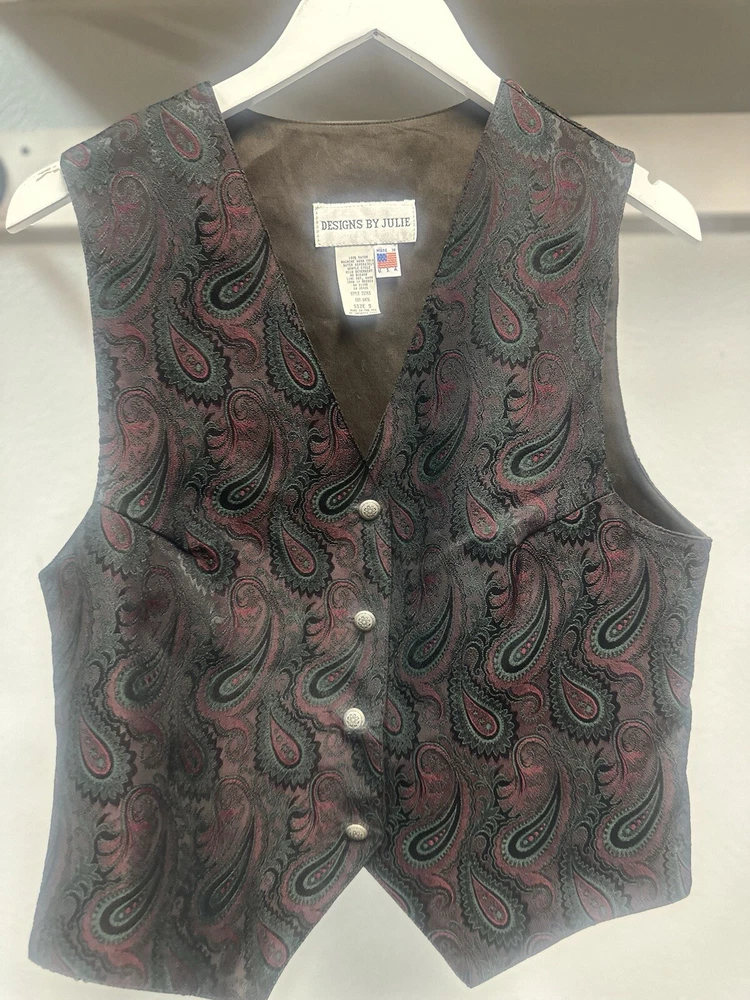 This Design By Julie vest is a stylish addition to any woman's wardrobe. The black color and regular size make it versatile for any occasion. Perfect for women who want to make a statement, this vest is made for the fashion-forward woman. The top is a type of vest that is perfect for layering over your favorite outfit. It is made for women who want to add a touch of sophistication to their look. With its unique design, this vest is perfect for any woman who wants to stand out from the crowd.