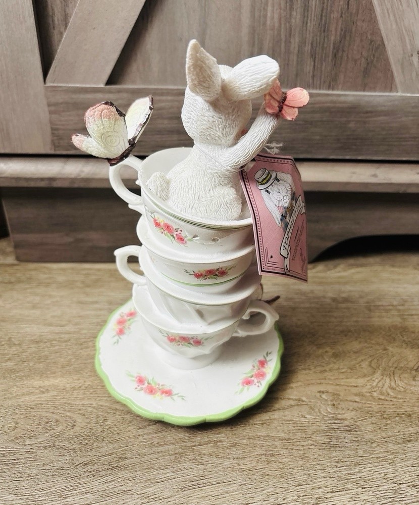 Easter Bunnies Pair Wooden Handmade 16cm Easter Decoration Bunny Figurine Set Standing