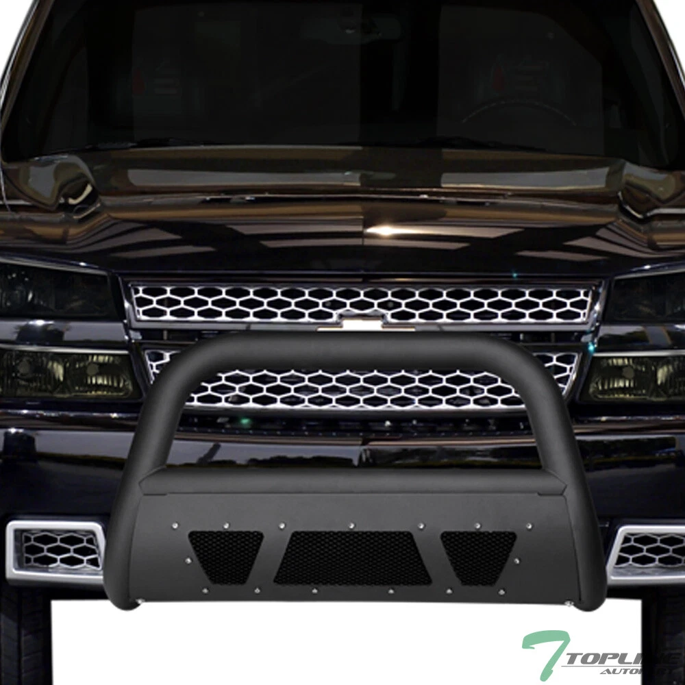 Powered by Frooition Save up to 5% daily deals shop now Topline For 1999-2007 Silverado/Sierra Studded Mesh Bull Bar Guard - Matte Black Topline For 1999-2007 Silverado/Sierra Studded Mesh Bull Bar Guard - Matte Black Part Number: bghd-sil991500-am-mb-201 Description Description Payment Shipping Return & Refund Feedback Description Item Description Application For 1999-2006 Chevy Silverado 1500 Models 2007 Chevy Silverado 1500 Classic Body Models 2000-2006 Chevy Suburban 1500 Models 2000-2006 Chevy Tahoe 1500 1/2 Ton Models 1999-2006 GMC Sierra 1500 Models 2007 GMC Sierra 1500 Classic Body Models 2000-2006 GMC Yukon / Yukon XL 1500 Models ( Will Not Fit HD Heavyduty / Denali Models ) Description Front Bumper Bull Bar Guard Features Studded Mesh Series Skid Plate Bull Bar Aluminum Mesh 3" Diameter Tube & 1.35mm Thickness Heavy Duty Steel With Flat Black Fine Shimmering Finish Warranty on Craftsmanship Only Product Details • 100% Brand New In Stock , Item Exactly As The Picture Shown • Rugged Frame & Body Mount Design For Strength & Durability • Provide Front Bumper & Grille Protection / Brush Guarding For Off-Road Use • Improves The Accessibility & Appearance Of Your Truck / SUV • All Necessary Mounting Hardware Are Included • Professional Installation Is Always Highly Recommended • Please Go Check Out Our Ebay Store For More Additional Hot Items Payment Payment Please complete the Ebay checkout within 3 days after winning. Payment is expected within 3 days after auction ends. Product availability is not guaranteed after 3 days. PAYPAL payment is for US. customer only and we only ship to PayPal confirmed address, no exception. PAYPAL payment ( in USD ) is the only payment method will be accepted for International Buyers. Insufficient payment amount or missing information will delay the process of order, please read the invoice carefully. Shipping Shipping U.S. 48 Contiguous States Shipping Service: UPS / Fedex Ground Price: $ 0 Transit Time: 1-7 Days With Tracking U.S. 48 Contiguous States ( Express Shipping Service ) Shipping Service: FedEx 2Day Price: $ 265 Transit Time: 1-3 Days With Tracking Canada Shipping Service: Fedex International Economy Price: $ 248 Transit Time: 2-5 Business Days With Tracking ( Brokerage Fee Is Included ) Alaska & Hawaii Shipping Service: FedEx 2Day Price: $ 265 Transit Time: 1-3 Days With Tracking International ( U.K. Europe, Australia Only ) Shipping Service: Not Available Price: $ Not Available Transit Time: Not Available There will be 9.5% Sales Tax on the Total sales price With Shipping Cost for California Buyers. " Free Shipping " Services, If offer, is for US Lower 48 States Buyers Only. Alaska & Hawaii will have a different Shipping rate. We accept Paypal / Credit Card payment through Ebay Checkout ONLY. We only ship to Paypal Confirmed Address as this is recommended for both buyer and seller protection. Most of the orders will be shipped out from our main warehouse CA 91789 within 24-48 hours after payment is cleared. The transit time is provided by the shipping carrier based upon the item is picked up. Additional shipping charge will be applied to reship for incorrect address entered by the buyer at checkout. We DO NOT Ship to PO Box , APO, FPO, Puerto Rico , Virgin Islands, Guam , American Samoa , Minor Outlying Islands , Northern Mariana Islands. International & Canada buyers are responsible for any possible brokerage/custom fee. Please consult with your local post office or authority for details. All International countries except CANADA. If Buyer can't find their country shipping rate in the Ebay shipping info, We apologize that we couldn't process the shipment to those countries which are not listed. Alaska & Hawaii Buyers Attention: Please only choose The Correct Shipping Method That Shown On The Shipping Table For ALASKA & HAWAII at the Ebay checkout to complete the transactions. It is the only shipping method that we provide for customers on U.S. territories outside the lower 48 states. Wrong shipping method selected will put the order on hold for insufficient shipping fee paid. There are shipping size limitation on certain items such as body parts that we are not be able to ship to AK/HI. Please feel free to contact us prior to bidding. We do provide Combined Shipping Discount, Buyer would receive a 10% shipping fee discount after the highest shipping fee is paid full. For example, if shipping fee on first item is $20, shipping fee on the second item is $10. Then the total shipping fee would be $20+ 0.9 x $10 = $29 for the combined shipping fee etc. Return & Refund Return & Refund Since all our products are sold "brand new", all damaged products are considered damage during transit. Please inspect and hand-fit all items by the time it arrives. Customer MUST contact us within 7 days after the date of package arrived via email for all claims of shipment damage, defects, missing parts, or dissatisfy. No claims will be accepted after 7 days, NO EXCEPTION. If the product you received is not what you purchased or not function as intend due to manufacturer's defect, we will gladly replace it at no charge. However, it is necessary that you can provide a photo to show us the problem before we issue a return label for you. And we must first receive the product, and examine the defective item before an exchange, or refund is issued. When you received a damage or loss package, please email us immediately so that we can help you to file claims with carrier ASAP. Once we receive your email, we should file a damage/loss claim against the carrier. Replacement will be shipped out after we receive the approval confirmation from the carrier. However, if the claim is denied, we will NOT be responsible for the lost package. For the damaged item, we will offer the buyer an exchange only. Buyers are responsible for return shipping fee. All auction sales are final. We can only issue an exchange for the following reasons: Defective Item or wrong Item 