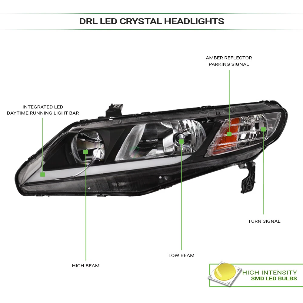 Powered by Frooition Save up to 5% daily deals shop now Topline For 2006-2011 Honda Civic Sedan LED Strip Headlights Signal Amber Black Topline For 2006-2011 Honda Civic Sedan LED Strip Headlights Signal Amber Black Part Number: hlnb-civ064dlbw-jdma-001 Description Description Payment Shipping Return & Refund Feedback Description Item Description Application For 2006-2011 Honda Civic 4 Door Sedan Models Description Crystal Headlights Features Custom Design With Fiber Optic LED Strips New Technology High Intensity SMD LED Tube Bar Daytime Running Light Can Be Help Other Road Users Identify & Better Visibility On Road Offers Extra Smooth & Bright Light During Day / Night Time Brings Significant Exterior Upgrade, Give Your Vehicle An Unique Look Product Details • 100% Brand New In Stock, Item Exactly As The Picture Shown • Comes With A Complete Set ( Driver & Passenger Side ) • Direct Bolt-On Replacement • Instruction Is Not Included, Highly Recommend To Install By Professional Mechanic • Modification Might Require For Using HID Lighting System • Dramatically Improve Both Styling & Appearance • Please Go Check Out Our Ebay Store For More Additional Hot Items Technical Tips : For Cars That Do Not Have Daytime Running Light ( DRL ) Function: The Lights / HALO / LED Part Can Serve As / Give Out Daytime Running Light ( DRL ) As Extra Functions But In Order For It to Work, You Might Need Modifications To The Wirings And Plugs. Additional Wirings & Plugs For Daytime Running Light ( DRL ) Function Will Not Be Provided. Please Advice Mechanics For Installation & Remember that Professional Installation Is Always Highly Recommended. Please make sure all Headlights are install properly, sockets are tightly fastened and all O-rings or rubber gaskets are in great condition. Broken or loose O-rings or rubber gaskets on your factory sockets can cause moisture in your lights ( It can damage your light bulb ). If you happen to have moisture buildup in your lights, please try the following solution. simply remove the lights from the vehicle and set out in the sun or in a dry area for at least few hours. Wait until the moisture has fully evaporated, and reseal around the seams with a clear silicone sealant on the assembly and replace any worn down O-rings or rubber gaskets. This should alleviate the condensation issue. Payment Payment Please complete the Ebay checkout within 3 days after winning. Payment is expected within 3 days after auction ends. Product availability is not guaranteed after 3 days. PAYPAL payment is for US. customer only and we only ship to PayPal confirmed address, no exception. PAYPAL payment ( in USD ) is the only payment method will be accepted for International Buyers. Insufficient payment amount or missing information will delay the process of order, please read the invoice carefully. Shipping Shipping U.S. 48 Contiguous States Shipping Service: UPS / Fedex Ground Price: $ 0 Transit Time: 1-7 Days With Tracking U.S. 48 Contiguous States ( Express Shipping Service ) Shipping Service: FedEx 2Day Price: $ 128 Transit Time: 1-3 Days With Tracking Canada Shipping Service: Fedex International Economy Price: $ 146 Transit Time: 2-5 Business Days With Tracking ( Brokerage Fee Is Included ) Alaska & Hawaii Shipping Service: FedEx 2Day Price: $ 128 Transit Time: 1-3 Days With Tracking International ( U.K. Europe, Australia Only ) Shipping Service: Not Available Price: $ Not Available Transit Time: Not Available There will be 9.5% Sales Tax on the Total sales price With Shipping Cost for California Buyers. " Free Shipping " Services, If offer, is for US Lower 48 States Buyers Only. Alaska & Hawaii will have a different Shipping rate. We accept Paypal / Credit Card payment through Ebay Checkout ONLY. We only ship to Paypal Confirmed Address as this is recommended for both buyer and seller protection. Most of the orders will be shipped out from our main warehouse CA 91789 within 24-48 hours after payment is cleared. The transit time is provided by the shipping carrier based upon the item is picked up. Additional shipping charge will be applied to reship for incorrect address entered by the buyer at checkout. We DO NOT Ship to PO Box , APO, FPO, Puerto Rico , Virgin Islands, Guam , American Samoa , Minor Outlying Islands , Northern Mariana Islands. International & Canada buyers are responsible for any possible brokerage/custom fee. Please consult with your local post office or authority for details. All International countries except CANADA. If Buyer can't find their country shipping rate in the Ebay shipping info, We apologize that we couldn't process the shipment to those countries which are not listed. Alaska & Hawaii Buyers Attention: Please only choose The Correct Shipping Method That Shown On The Shipping Table For ALASKA & HAWAII at the Ebay checkout to complete the transactions. It is the only shipping method that we provide for customers on U.S. territories outside the lower 48 states. Wrong shipping method selected will put the order on hold for insufficient shipping fee paid. There are shipping size limitation on certain items such as body parts that we are not be able to ship to AK/HI. Please feel free to contact us prior to bidding. We do provide Combined Shipping Discount, Buyer would receive a 10% shipping fee discount after the highest shipping fee is paid full. For example, if shipping fee on first item is $20, shipping fee on the second item is $10. Then the total shipping fee would be $20+ 0.9 x $10 = $29 for the combined shipping fee etc. Return & Refund Return & Refund Since all our products are sold "brand new", all damaged products are considered damage during transit. Please inspect and hand-fit all items by the time it arrives. Customer MUST contact us within 7 days after the date of package arrived via email for all claims of shipment damage, defects, missing parts, or dissatisfy. No claims will be accepted after 7 days, NO EXCEPTION. If the product you rece