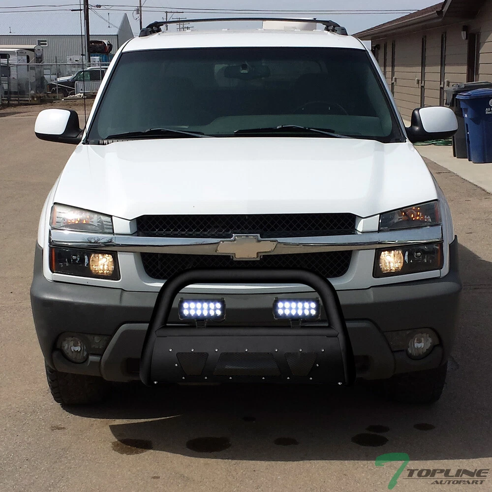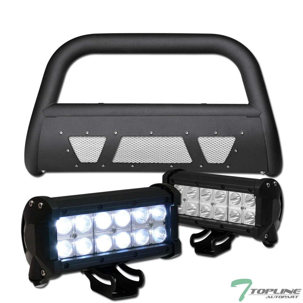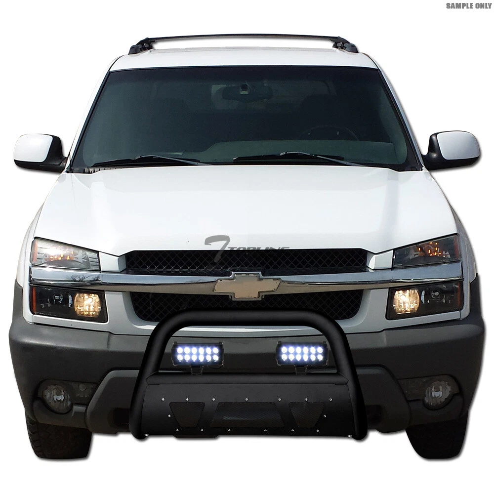 Powered by Frooition Save up to 5% daily deals shop now Topline For 99-07 Silverado/Sierra Matte Black Studded Mesh Bull Bar v2+36W LED Topline For 99-07 Silverado/Sierra Matte Black Studded Mesh Bull Bar v2+36W LED Part Number: bghd-ava021500-am-mb+flbw-12cree-lb-whx2-201 Description Description Payment Shipping Return & Refund Feedback Description Item Description Application For 1999-2006 Chevy Silverado 1500 Models 2007 Chevy Silverado 1500 Classic Body Models 2002-2006 Chevy Avalanche 1500 ( Models With & Without Cladding ) 2000-2006 Chevy Suburban 1500 Models 2000-2006 Chevy Tahoe 1500 1/2 Ton Models 1999-2006 GMC Sierra 1500 Models 2007 GMC Sierra 1500 Classic Body Models 2000-2006 GMC Yukon / Yukon XL 1500 Models ( Will Not Fit HD Heavyduty / Denali Models ) Description Front Bumper Bull Bar Guard ( Version 2 ) & Universal Cree LED Light Bar ( Wires, Switch & Mounting Brackets Are Included ) Features Studded Mesh Series Skid Plate Bull Bar : Aluminum Mesh 3" Diameter Tube & 1.35mm Thickness Heavy Duty Steel With Flat Black Fine Shimmering Finish Warranty on Craftsmanship Only Fog Lights : 40 PCS x 3W High Intensity LEDs Super Bright Offroad Style Beam Type: Combo Beam - Spot Beam 30 Degree ( Center Group Of 24 LEDs - Long Range Light ) + Flood Beam 60 Degree ( Left / Right Side Group Of 16 LEDs - Wide & Short Areas ) Dimension: Long: 22" / Height: 3.5" / Depth: 3" Power: 120W Theoretical Lumens Output: 12000LM Operating Lumens Output: 8410LM This Light Bar Allow You To Mount On Anywhere Of Your Vehicle Such As Bull Guard, Grille Bar, Front Bumper & Rooftop Etc Excellent on Waterproof, Dustproof, Anti-Corrosion Etc Product Details • 100% Brand New In Stock , Item Exactly As The Picture Shown • Rugged Frame & Body Mount Design For Strength & Durability • Provide Front Bumper & Grille Protection / Brush Guarding For Off-Road Use • Improves The Accessibility & Appearance Of Your Truck / SUV • All Necessary Mounting Hardware Are Included • Professional Installation Is Always Highly Recommended • Please Go Check Out Our Ebay Store For More Additional Hot Items Payment Payment Please complete the Ebay checkout within 3 days after winning. Payment is expected within 3 days after auction ends. Product availability is not guaranteed after 3 days. PAYPAL payment is for US. customer only and we only ship to PayPal confirmed address, no exception. PAYPAL payment ( in USD ) is the only payment method will be accepted for International Buyers. Insufficient payment amount or missing information will delay the process of order, please read the invoice carefully. Shipping Shipping U.S. 48 Contiguous States Shipping Service: UPS / Fedex Ground Price: $ 0 Transit Time: 1-7 Days With Tracking U.S. 48 Contiguous States ( Express Shipping Service ) Shipping Service: FedEx 2Day Price: $ 204 Transit Time: 1-3 Days With Tracking Canada Shipping Service: Fedex International Economy Price: $ 217 Transit Time: 2-5 Business Days With Tracking ( Brokerage Fee Is Included ) Alaska & Hawaii Shipping Service: FedEx 2Day Price: $ 204 Transit Time: 1-3 Days With Tracking International ( U.K. Europe, Australia Only ) Shipping Service: Not Available Price: $ Not Available Transit Time: Not Available There will be 9.5% Sales Tax on the Total sales price With Shipping Cost for California Buyers. " Free Shipping " Services, If offer, is for US Lower 48 States Buyers Only. Alaska & Hawaii will have a different Shipping rate. We accept Paypal / Credit Card payment through Ebay Checkout ONLY. We only ship to Paypal Confirmed Address as this is recommended for both buyer and seller protection. Most of the orders will be shipped out from our main warehouse CA 91789 within 24-48 hours after payment is cleared. The transit time is provided by the shipping carrier based upon the item is picked up. Additional shipping charge will be applied to reship for incorrect address entered by the buyer at checkout. We DO NOT Ship to PO Box , APO, FPO, Puerto Rico , Virgin Islands, Guam , American Samoa , Minor Outlying Islands , Northern Mariana Islands. International & Canada buyers are responsible for any possible brokerage/custom fee. Please consult with your local post office or authority for details. All International countries except CANADA. If Buyer can't find their country shipping rate in the Ebay shipping info, We apologize that we couldn't process the shipment to those countries which are not listed. Alaska & Hawaii Buyers Attention: Please only choose The Correct Shipping Method That Shown On The Shipping Table For ALASKA & HAWAII at the Ebay checkout to complete the transactions. It is the only shipping method that we provide for customers on U.S. territories outside the lower 48 states. Wrong shipping method selected will put the order on hold for insufficient shipping fee paid. There are shipping size limitation on certain items such as body parts that we are not be able to ship to AK/HI. Please feel free to contact us prior to bidding. We do provide Combined Shipping Discount, Buyer would receive a 10% shipping fee discount after the highest shipping fee is paid full. For example, if shipping fee on first item is $20, shipping fee on the second item is $10. Then the total shipping fee would be $20+ 0.9 x $10 = $29 for the combined shipping fee etc. Return & Refund Return & Refund Since all our products are sold "brand new", all damaged products are considered damage during transit. Please inspect and hand-fit all items by the time it arrives. Customer MUST contact us within 7 days after the date of package arrived via email for all claims of shipment damage, defects, missing parts, or dissatisfy. No claims will be accepted after 7 days, NO EXCEPTION. If the product you received is not what you purchased or not function as intend due to manufacturer's defect, we will gladly replace it at no charge. However, it is necessary that you can provide a photo to show us the problem before we issue a return label for y