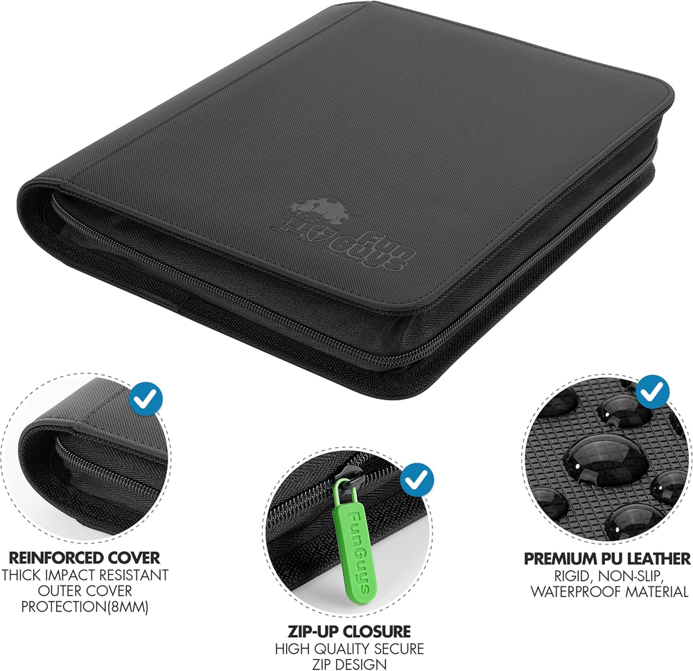 Special Features: Custom Spine to Prevent Bending, Heavy Duty Zipper Closure, Ultra Batteries Included?: No UPC: 7445001022041 Number of Pieces: 1 Finish: Faux Leather Pattern: Modern Special Feature: Custom Spine to Prevent Bending, Heavy Duty Zipper Closure, Ultra Brand: Does not apply Recommended Uses For Product: For Trading Cards Material: Faux Leather Frame Type: Rectangle Theme: Anime gtin13: 7445001022041 Batteries Required?: No Shape: Rectangular Style: Modern Item model number: FGUG-TLB-4P-T-BLK-BLK-23 Size: 11.25 X 10 X 2 Inches Measurement System: Imperial Pages: 32 Pages Specific Uses For Product: For Top Loaders, For Trading Cards Occasion: Birthday, Christmas, Father's Day, Gifts, Mother's Day Item Weight: 1.1 pounds Included Components: 1) 4 Pocket Toploader Binder Country of Origin: China Product Dimensions: 11.25"L x 10"W x 2"H Target Audience: Adults, Tweens, Teens, Collectors, Kids, Children Type: Does not apply Color: Black and Black Item Package Quantity: 1 Part Number: FGUG-TLB-4P-T-BLK-BLK-23 Model Name: FGUG-TLB-4P-T-BLK-BLK-23
