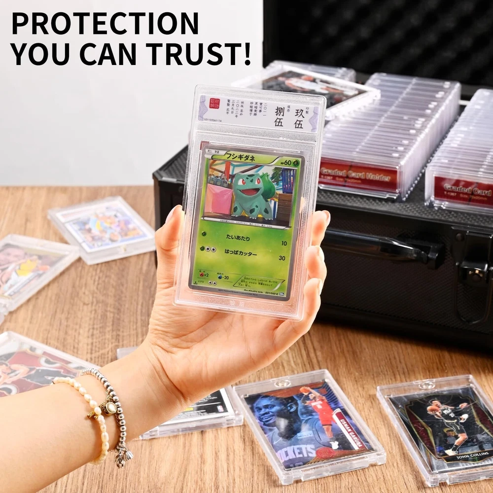 Toploader Storage Box for 3" x 4" 35pt Rigid Card, Trading Card Organizer, Graded Card Storage Box,Top Loaders Card case Product Details Product Dimensions: 13 x 10.6 x 6.5 inches Item Weight: 3.5 pounds Manufacturer: Kaletoo Country of Origin: China Item model number: K-W3002 Large capacity: Kaletoo card boxes can hold up to 320+ top-loading cards or 82+ magnetic cards, and can also accommodate a variety of card boards, and trading card organizers to meet the needs of different types of card collections Durable material: Kaletoo card cases are made of durable, thickened aluminum frames and water-resistant, high-stiffness composite fabrics that can withstand the rigors of transportation and storage while maintaining a stylish, professional appearance Security protection: the combination of a sturdy hard shell and a soft inner liner gives it good shock, dust and moisture resistance, so that your card receives all-around protection A must-have set for card collectors: if you are a card collector, please have it to give your beloved cards a home, let it protect your cards for you, so that the cards retain their value for a long time! OUR AFTER-SALES SERVICE:We are always ready to help you no matter before or after your purchase, please contact us if you have any questions or problems. Any quality problems will be solved satisfactorily