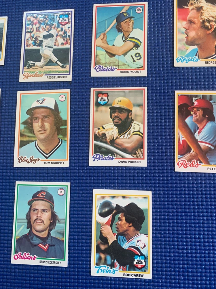 Lot of 11 Baseball cards out of 1978 Topps. Beautiful Near Mint lot, all worth grading. This lot features 10 out of 11 hall of famers, including: Robin Yount Reggie Jackson Mike Schmidt Whitey Herzog Dave Parker Dave Winfield George Brett Pete Rose (Soon) Robin Yount Rod Carew Dennis Eckersley