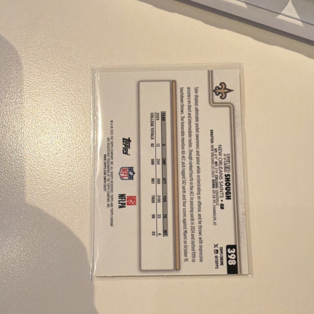 Topps 2024 Chrome Tyler Shough Rookie Gold #398 /275 Saints NFL Football