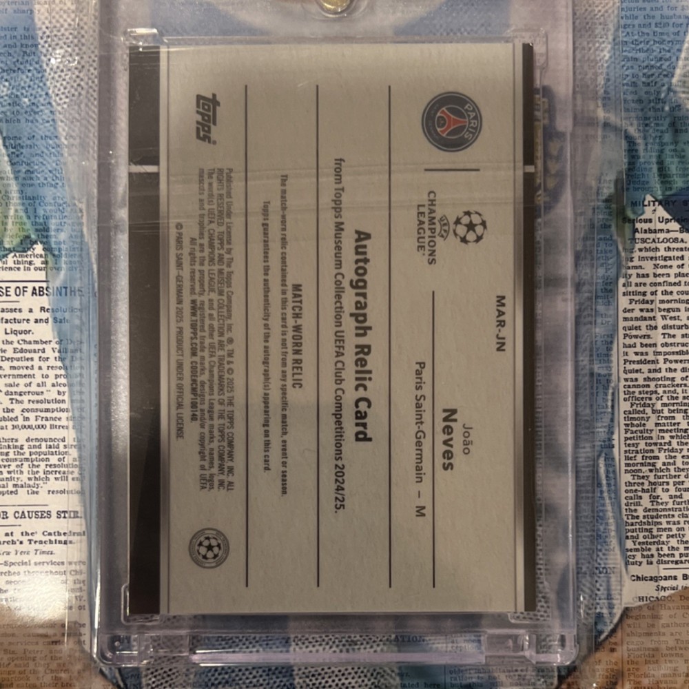 Topps 2024-25 UEFA Joao Neves PSG Autograph Relic /99 MAR-JN
