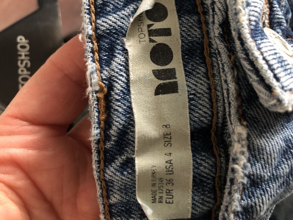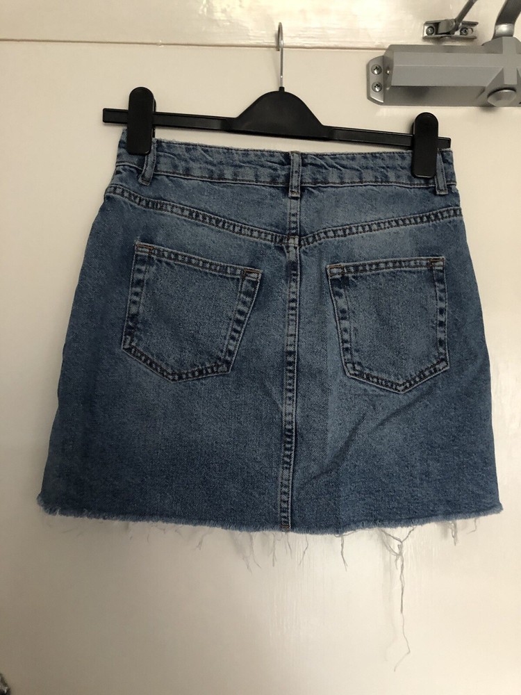 Great little mini skirt with studs and raw hem . Distressed effect. Please note there is a small rip in skirt by zip. Not sure if this is part of the distressed look or not. Price reflects this . Otherwise very good condition.