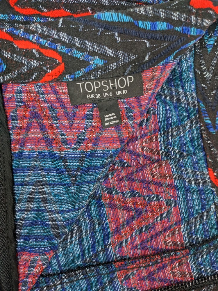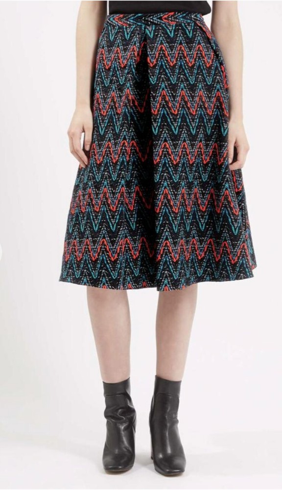 Condition - Very Good Elevate your wardrobe with this stunning Topshop Zig-Zag Pleated Midi Skirt. The multi-coloured A-line skirt is perfect for any occasion, whether it be a party, work or casual wear. The pleated accents add a touch of elegance to the skirt, while the mid-rise and midi length make it both comfortable and fashionable. Crafted with quality in mind, this skirt is perfect for the fashion-forward woman who wants to make a statement. The skirt features a zip closure and is fully lined for added comfort. It comes in a size UK 10 EUR 38 and is ideal for any season, including autumn, winter and spring. With a classic and stylish design, this skirt is a must-have for any fashionista.