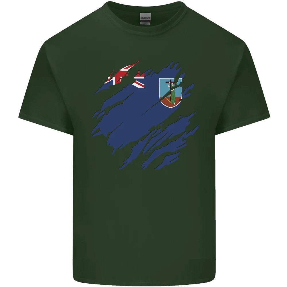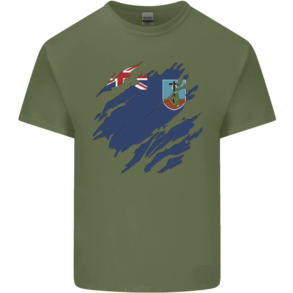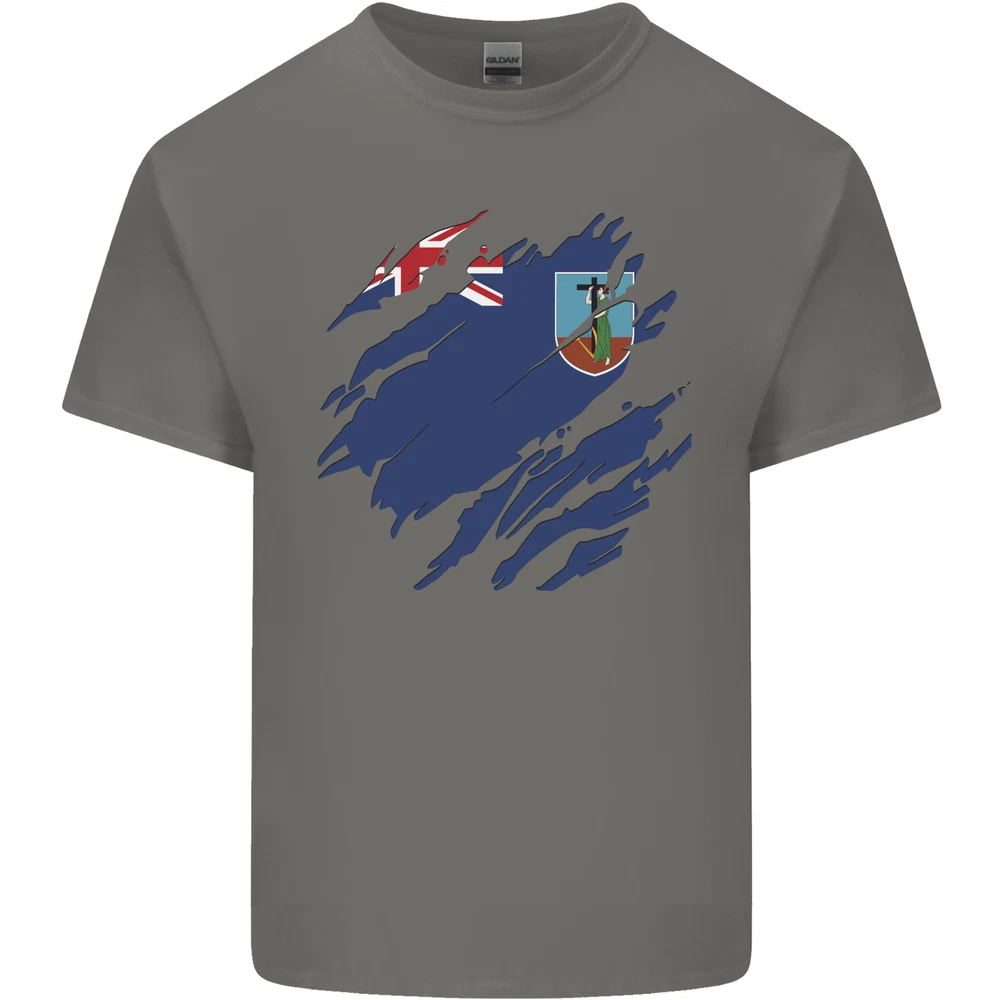 Torn Flag Montserrat Mens Cotton T-Shirt Tee Top
